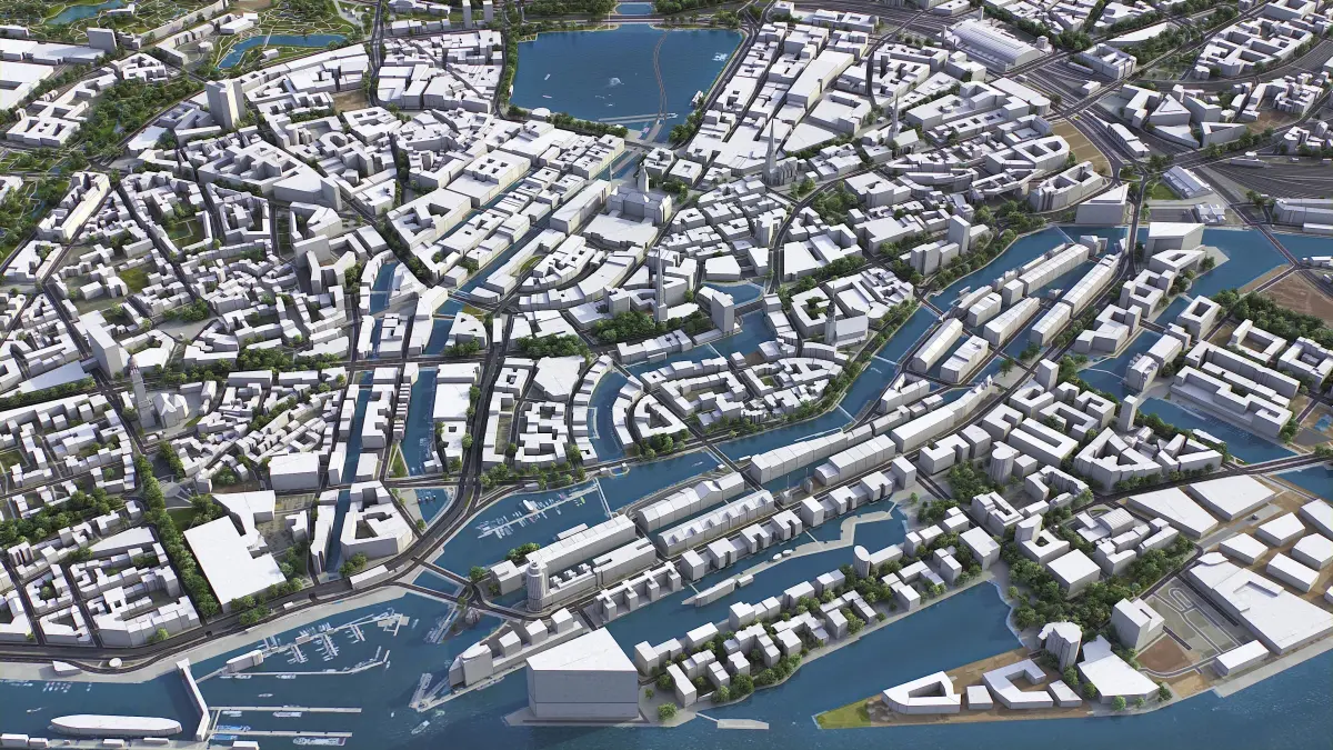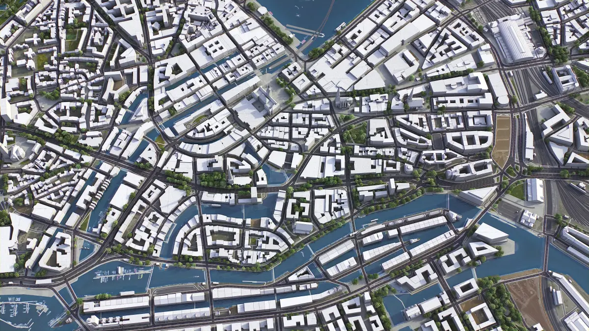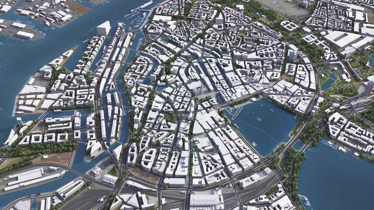 - This is 3D city model of downtown Hamburg, Germany