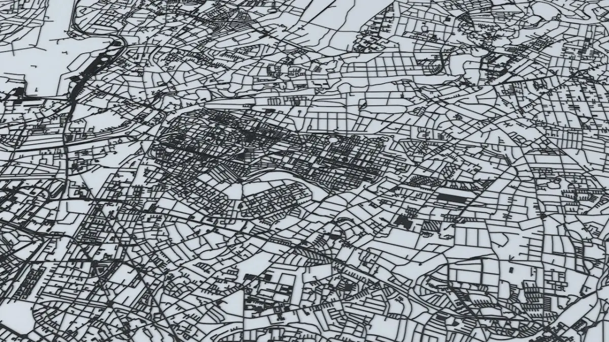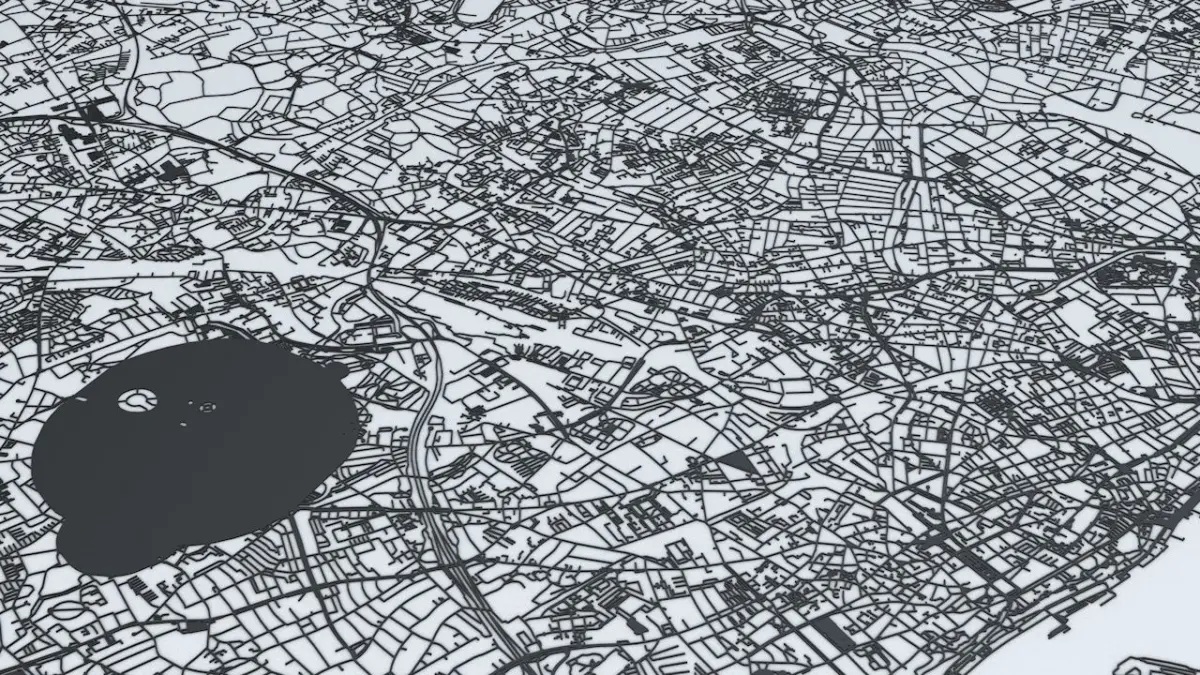- the model is positioned on a flat surface (road network is on the “floor” - no elevation data included)