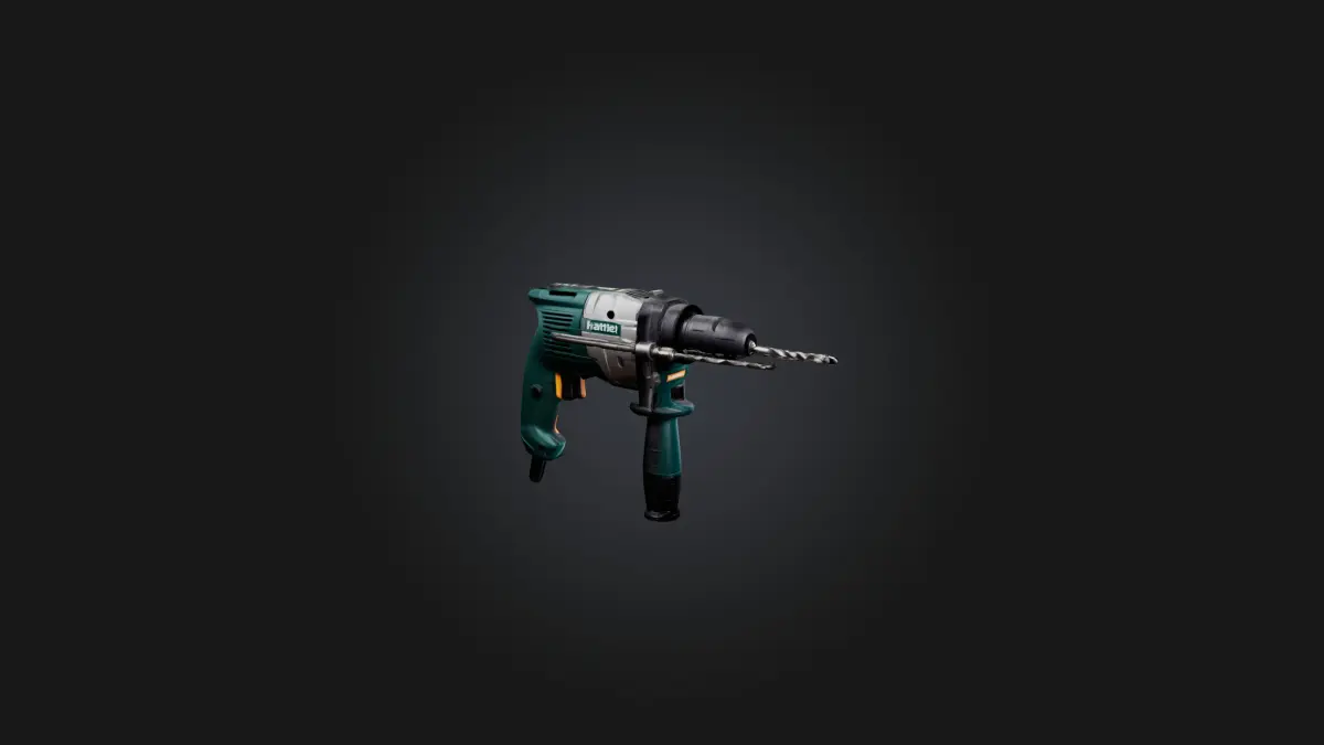 Um modelo 3D de alta qualidade de uma furadeira de impacto, ideal para visualização industrial, projetos de construção ou desenvolvimento de jogos. Formatos de arquivo disponíveis: FBX, OBJ, STL, GLB, USDZ, BLEND.