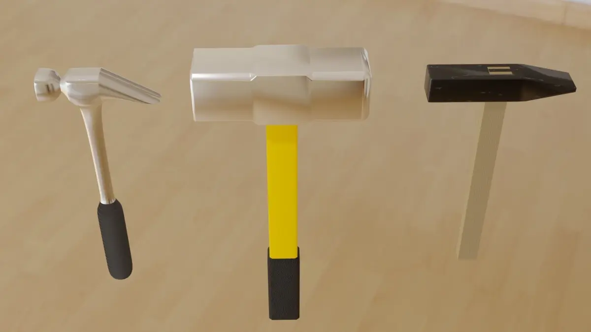Have an animation, scene or game that features forging, construction or demolition? Then this set of three hammers is just for you!The set includes one sledgehammer with a brushed steel head and a plastic handle, one chisel hammer with a wooden handle, and one cast steel claw hammer with a rubber handle.The set also includes two nails (oops, looks like one of them got knocked skew).This set is available in Blend, FBX and OBJ formats.