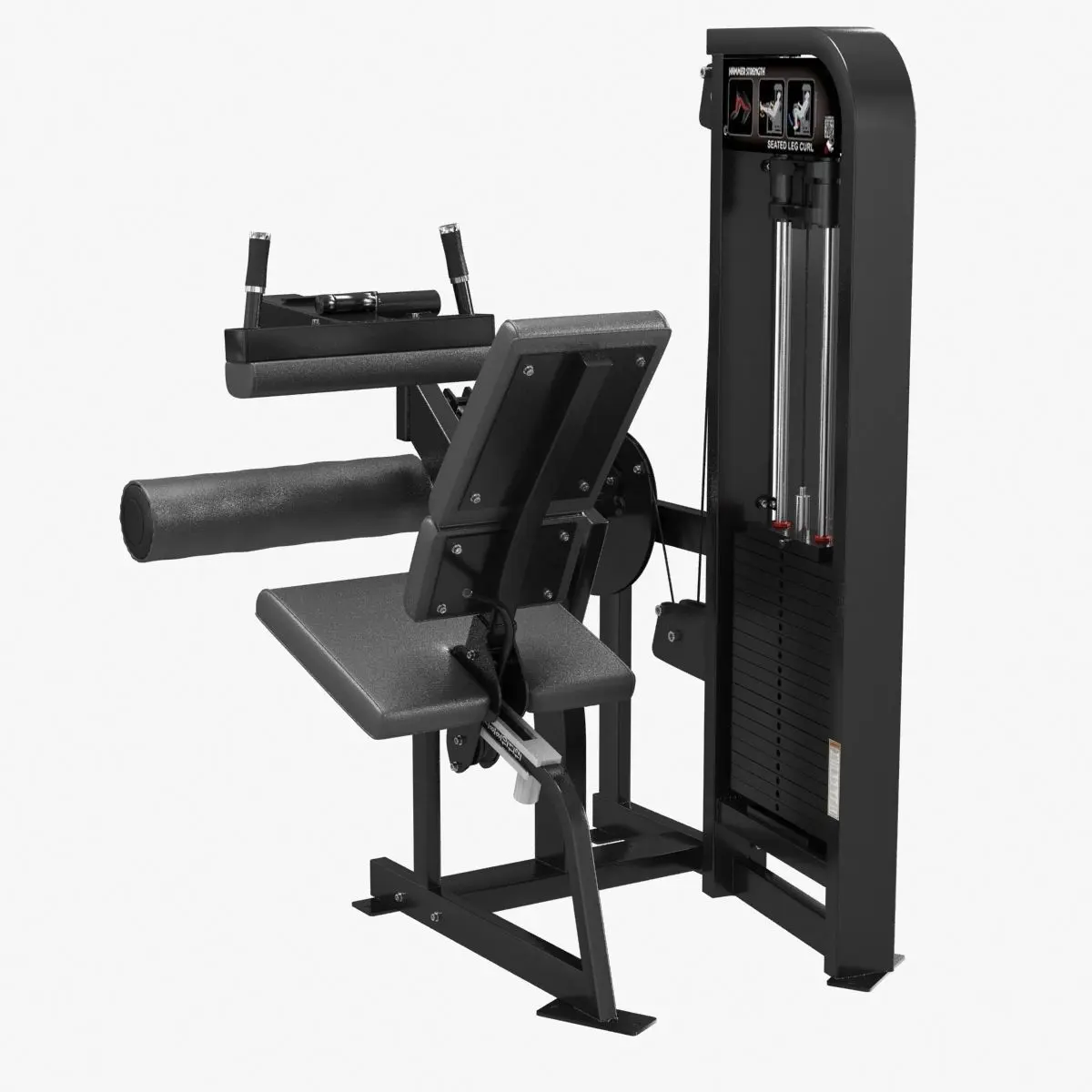 The full commercial Hammer Strength Select SE Full Leg Curl is perfect for all fitness environments providing high quality, reliable training. Features a 138kg weight stack, 5 start positions and adjustable thigh and back pads. Choose from a range of frame and upholstery colours.Weight stack: 295lb/138kgFull commercial build: Sturdy steel tubing, precision welds, and internally lubricated cables; 4-1/2(11 cm) and 6 (15 cm) diameter fiberglass-impregnated nylon pulleys with sealed bearings; 11-gauge steel frame ensures maximum structural integrity with electrostatic powder coat finish; standard rubber feet protect base of the frame and prevent the machine from slipping; electrostatic powder coat finish to ensure maximum adhesion and durabilityDurable foot platforms: polyethylene spray-coated for impact, corrosion and abrasion resistanceDurable cables: 7x19 strand construction, lubricated, nylon-coated cable meets U.S. military specificationsWeight plates and guide rods: 7/16"/11mm diameter weight selector pin magnetically locks in place and is connected to stack to prevent loss; solid-steel weight plates: top weight plate fitted with self-lubricating bushings; drop down incremental weight systemAdvanced cushioning: stitched edges eliminate folds in the material; pads moulded with radius on edge for improved comfortComfortable hand grips: extruded thermos-rubber compound is non-absorbing and wear-and-tear resistant; aluminium collars prevent slippingFive start positions: caters to individual preferencesAdjustable back pad: provides correct alignment; adjustable from seated positionSmooth seat mechanism: roller on seat adjustment provides smooth operationAdjustable thigh pad: handles enhance stabilizationGraphic placards: axis of rotation marked with red indicator to help cue correct alignment; simple-to-follow instructions illustrate proper use and muscles trainedColour options: choose from a range of frame and upholstery colours (select from grids)Shrouds: Optional full front shroud on SE models; Standard rear shroud on SE modelsDimensions (LxWxH): 140 x 87 x 140 cmProduct weight: 234kg