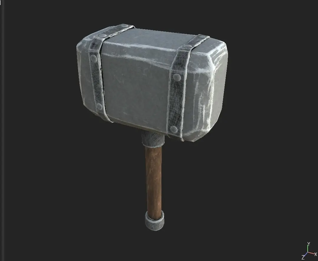 We all know why we need a hammer. A large heavy hammer, used for forging metal, crushing stones, etc. The smoked forge doors were wide open; the hammers were heard, hissing of furs, heavy blows of large hammers. Hammer - a tool used to strike when forging metals, breaking stones, etc.A blacksmith or hand hammer is usually made of ductile iron, and its ends are welded with steel. Very small hammers are made entirely of steel, while large hammers are made of cast iron. One end of the hand hammer is made either completely flat or with a slight bulge, it is called a fight or striker, and the other is wedge-shaped, it is called the back. All textures as 2k. I hope you enjoy it, I tried. Good luck