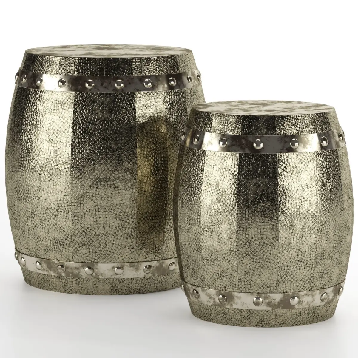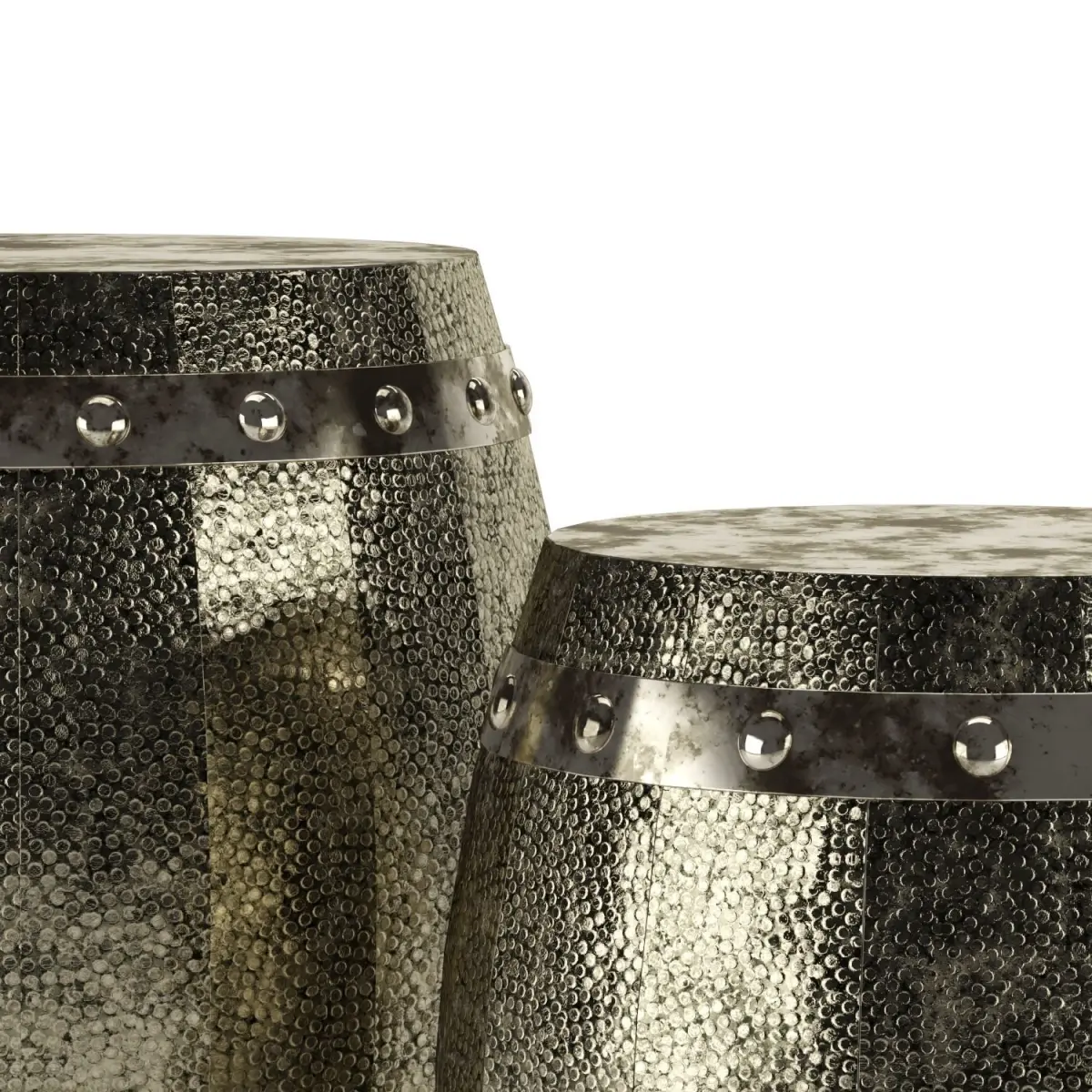 Model reference: Set of 2 Hammered Drum Stools with Antique Silver Finishhttps://www.laredoute.co.uk/ppdp/prod-350233987.aspx#shoppingtool=multipdp https://www.wayfair.co.uk/furniture/pdp/world-menagerie-szeto-hammered-drum-2-piece-stool-set-wlme2158.html