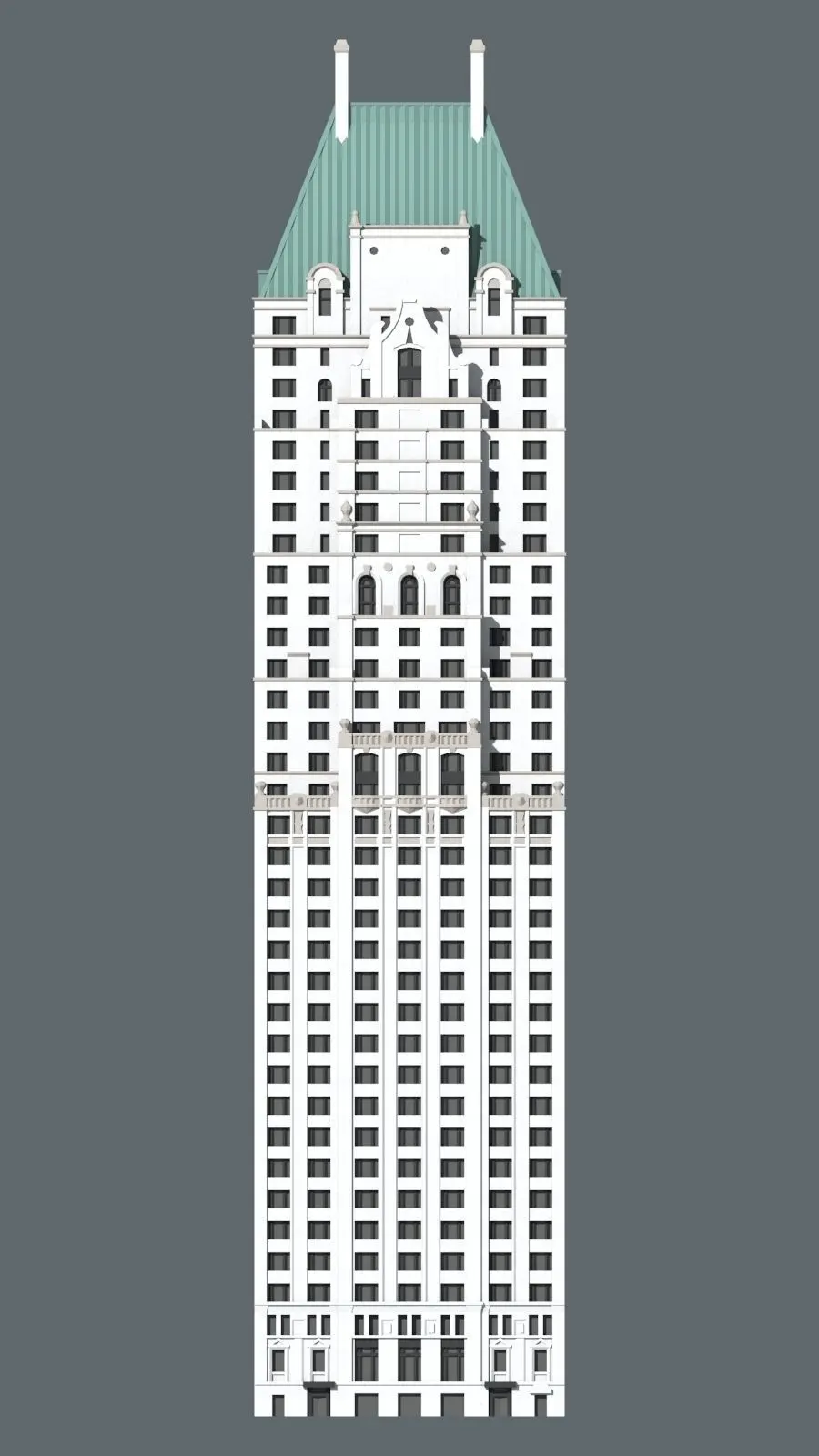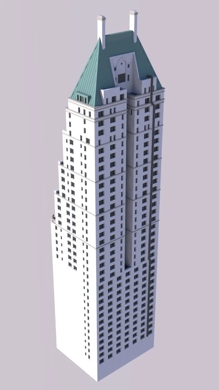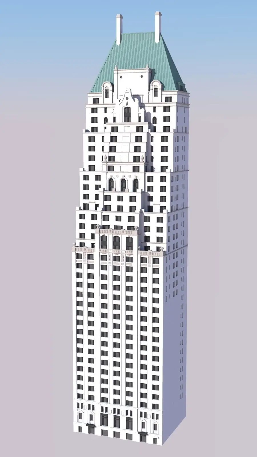 The Hampshire House is a 469ft (143m) tall skyscraper in New York City. Situated directly on the southern edge of Manhattan's Central Park, the building stands in an exceptionally prominent location. Its many setbacks, typical of the era, and its large pyramidal copper roof make it a widely recognized landmark of the city. The building, whose style may be roughly described as French-Renaissance Revival with several other classical ornaments, was completed in 1938. The building's design, by Caughey & Evans, was inspired by the nearby Savoy Plaza Hotel, which has since been demolished.