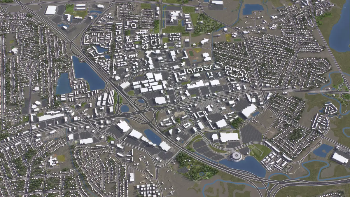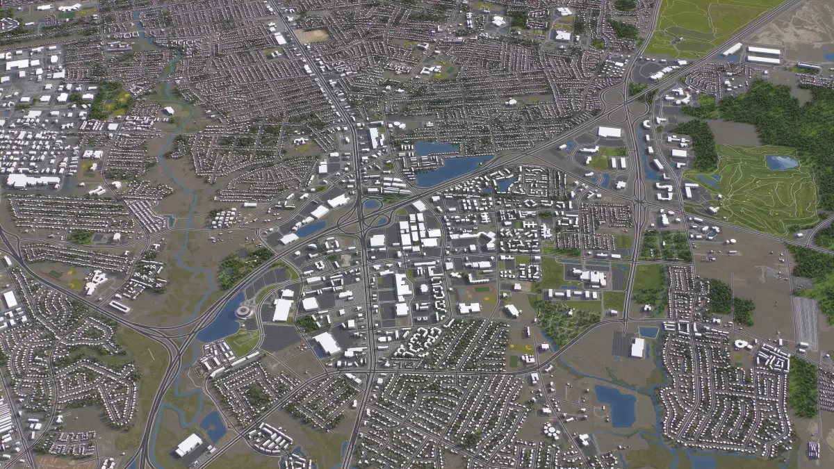 - Integrated Features — Buildings and roads accurately placed on terrain