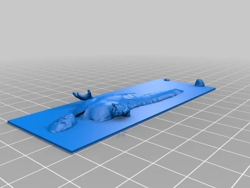The Poser figure model that was used for this originally by gianteye seemed to have been exported with a very low poly format, so I basically redid the pose on a new character in poser and exported it in high res instead and replaced the one on the carbonite. I left them seperate meshes incase anyone wants to dual extrude them.