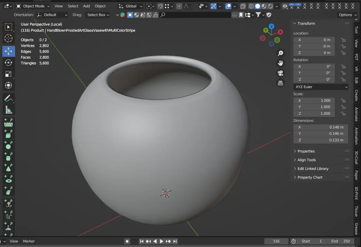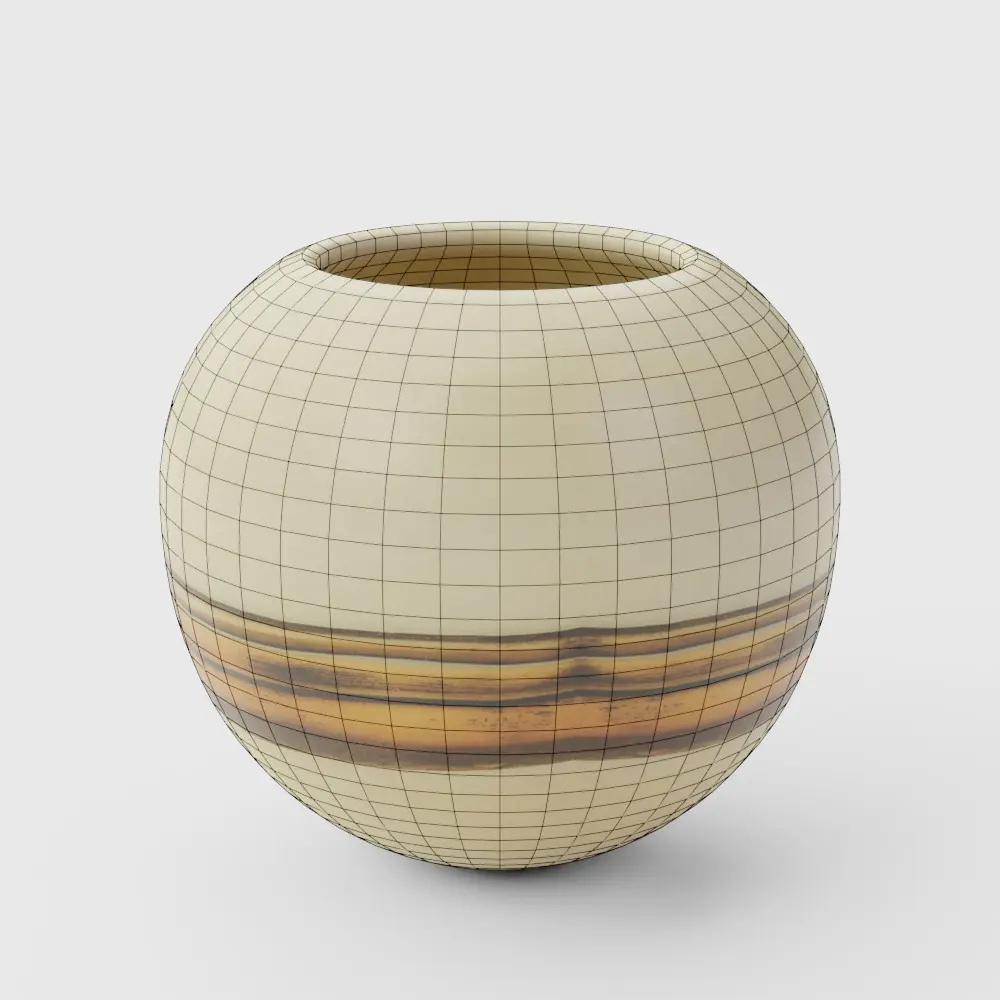 This Hand Blown Frosted Art Glass Vase Blender 3D model captures the elegance and uniqueness of artisan glasswork, featuring a frosted semi-opaque surface with flowing, multi-colored stripes. Perfect for adding an artistic, decorative element to any digital interior or product scene, this model is designed with photorealism and customization in mind.