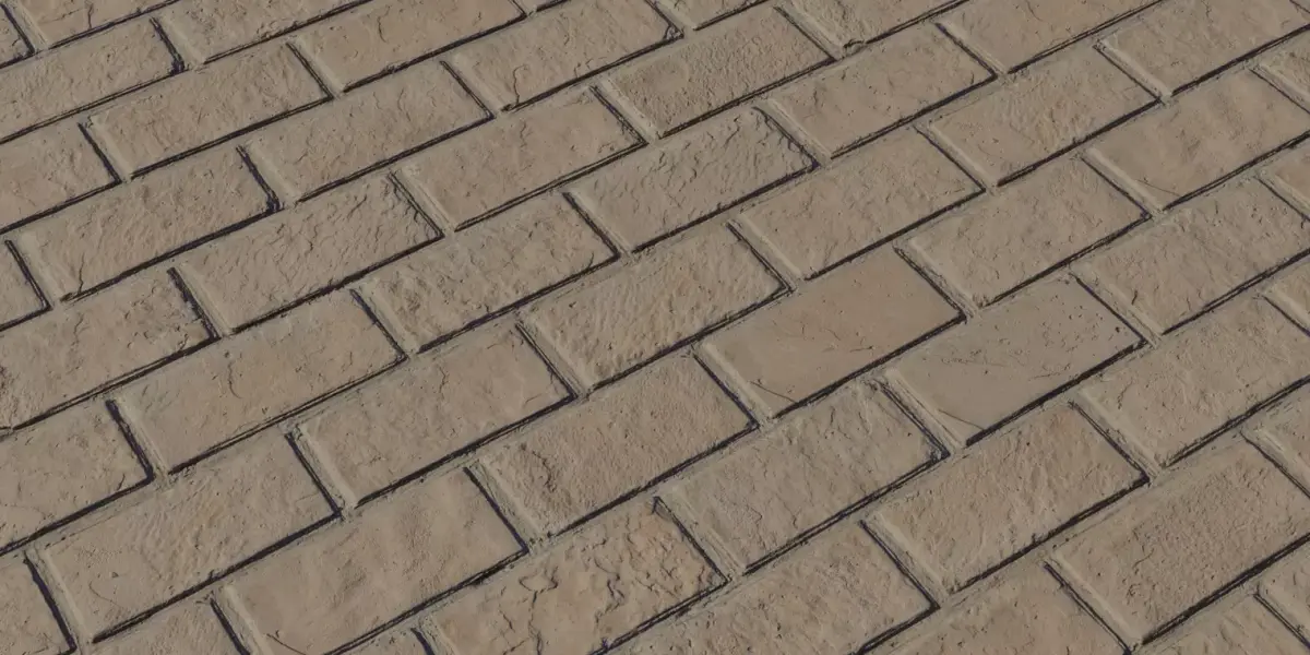 A seamless, photorealistic sandstone brick material featuring hand‑chiseled surface breakup, soft rounded edges, and deep mortar joints for strong depth and parallax in realtime and offline renders. Warm tan color with subtle variation reads well at both hero and mid distances, ideal for courtyards, facades, and historical or Mediterranean scenes in games, archviz, and film. Clean tiling and calibrated PBR values ensure consistent results across render engines, with maps authored to preserve fine pitting and layered erosion visible under raking light.