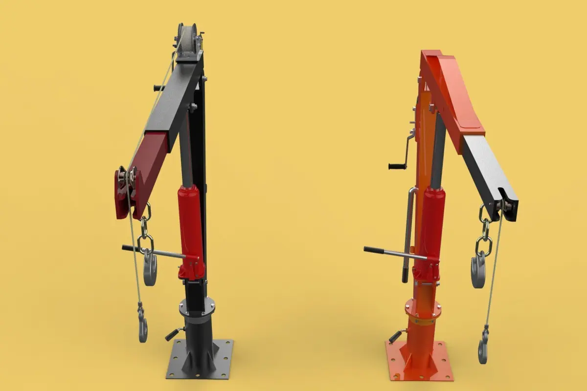 Workshop Crane: Designed for stationary use within a workshop or similar enclosed environment. Typically mounted to the floor or a sturdy base for stability.Hydraulic Lifting System: Utilizes hydraulic cylinders and a pump (often hand-operated or foot-operated) to provide powerful and controlled vertical lifting of loads. Hydraulic systems offer significant lifting capacity and smooth operation.