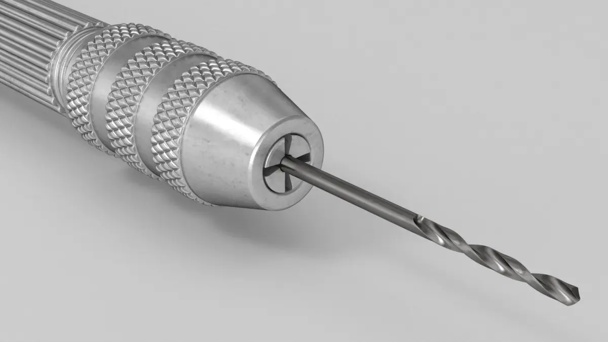 - 3D model of a hand drill with a drill bit.