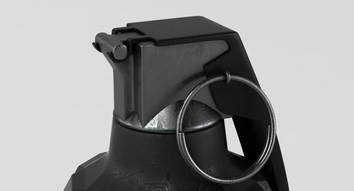 A DETAILED 3D MODEL OF A HAND GRENADE;