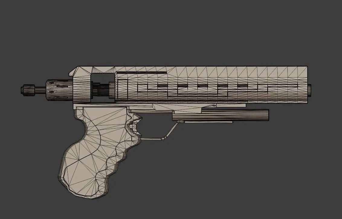 Game ready model of a custom Sci-fi hand gun. This model gun is made up of separate parts that can be animated. Modeled in high quality and can be use for a multitude of projects.