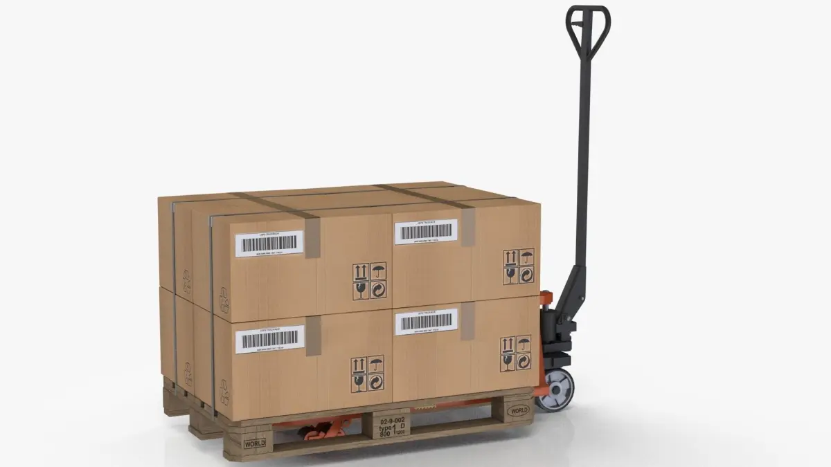 Hand pallet truck and Boxes