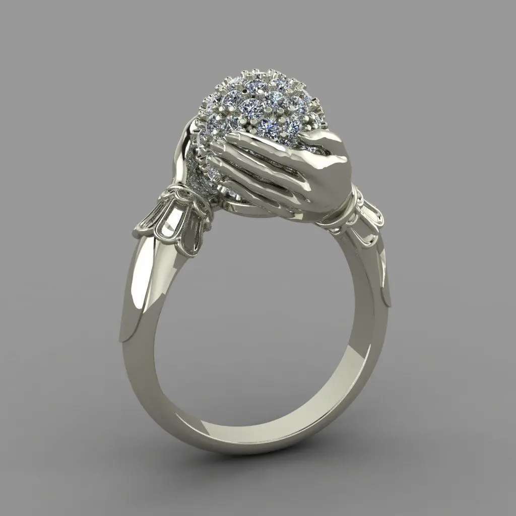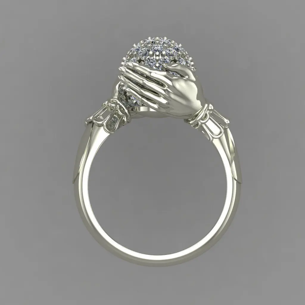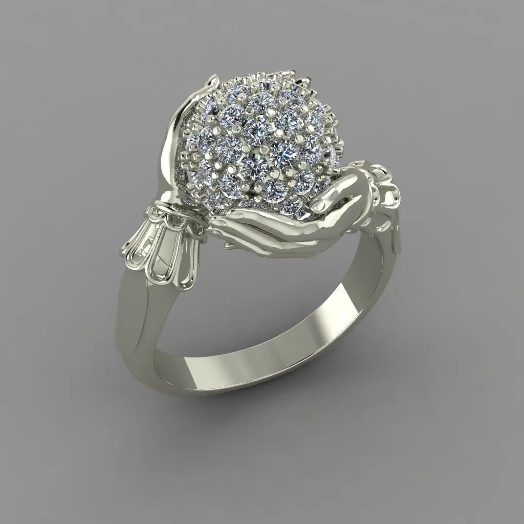 (Note: This description is tailored specifically for a 3D print model of a hand ring with a ball of diamonds. Feel free to make any modifications or provide more specific details to personalize the description further.)