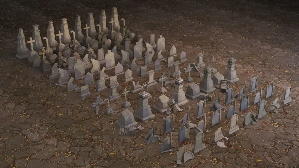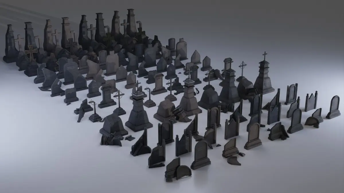 Contain 28 gravestone models - normal and damaged Each gravestone has 4 variation: Dark Clean, Light Clean, Dark Dirty, Light Dirty
