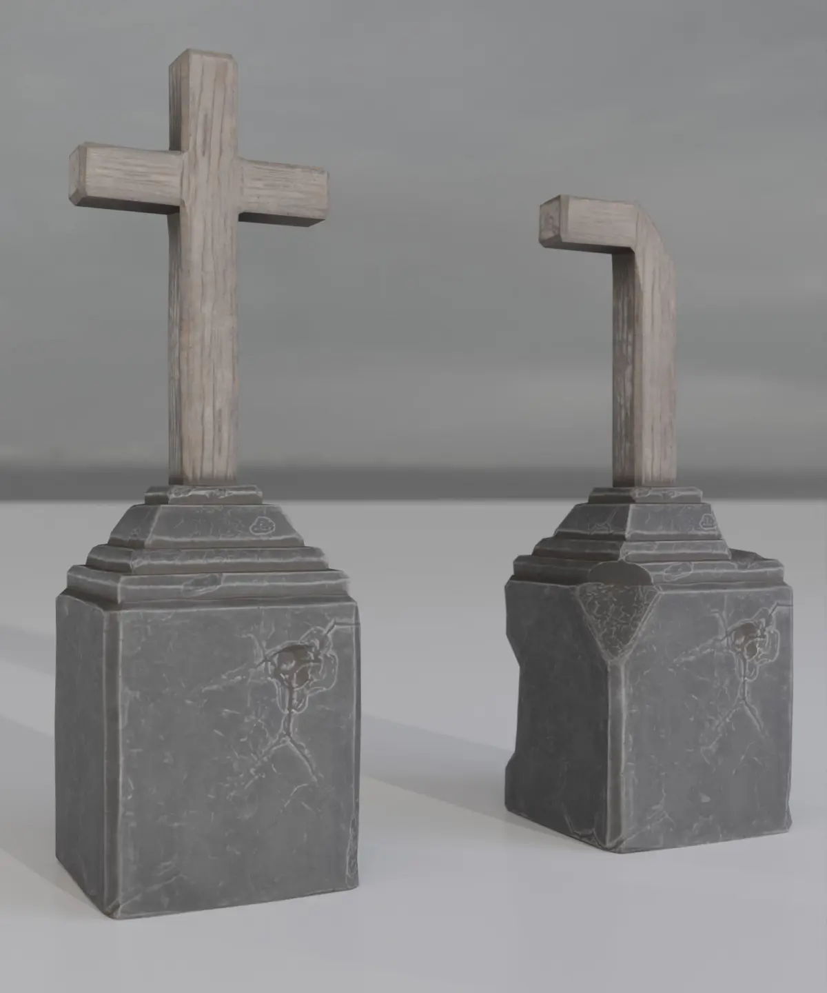 Contain 2 gravestone models - normal and damaged Each gravestone has 4 variations: Dark Clean, Light Clean, Dark Dirty, Light Dirty