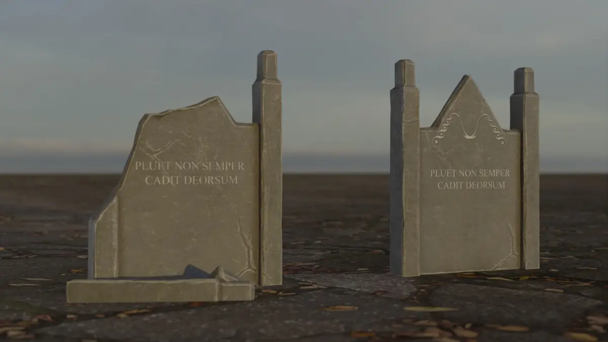 Contain 2 gravestone models - normal and damaged Each gravestone has 4 variation: Dark Clean, Light Clean, Dark Dirty, Light Dirty
