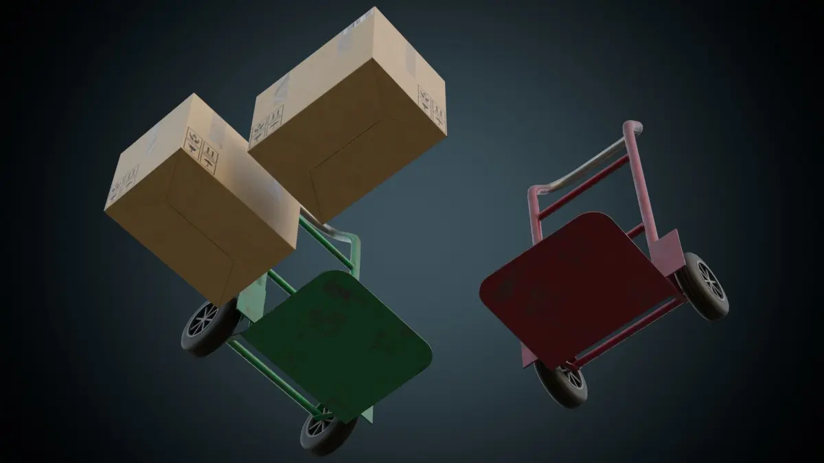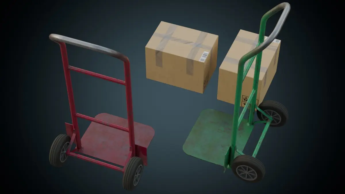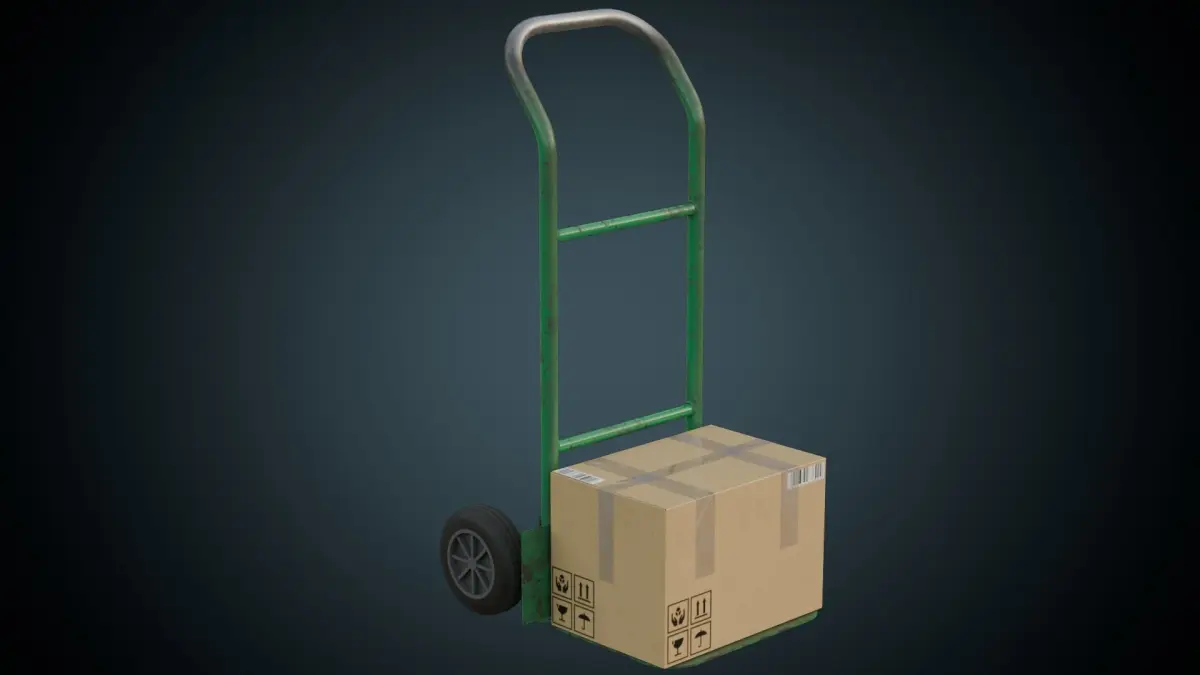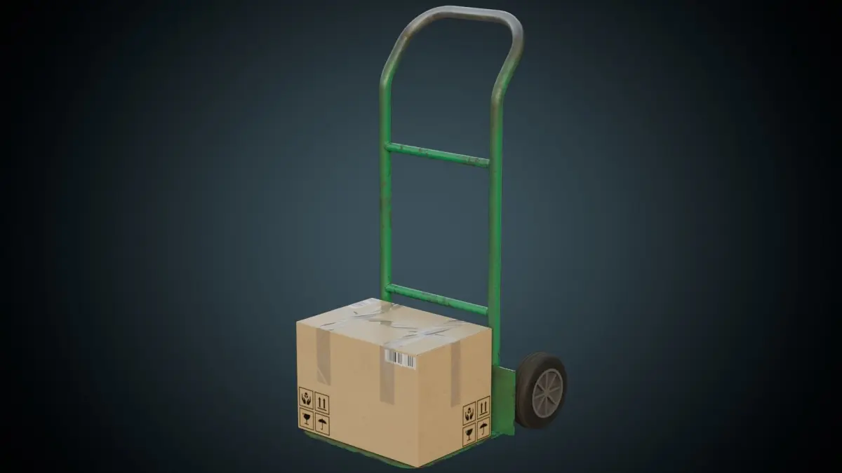 This is a model of a Hand Truck And Cardboard Box.Created with Blender 4.2 and textured using Substance Painter.