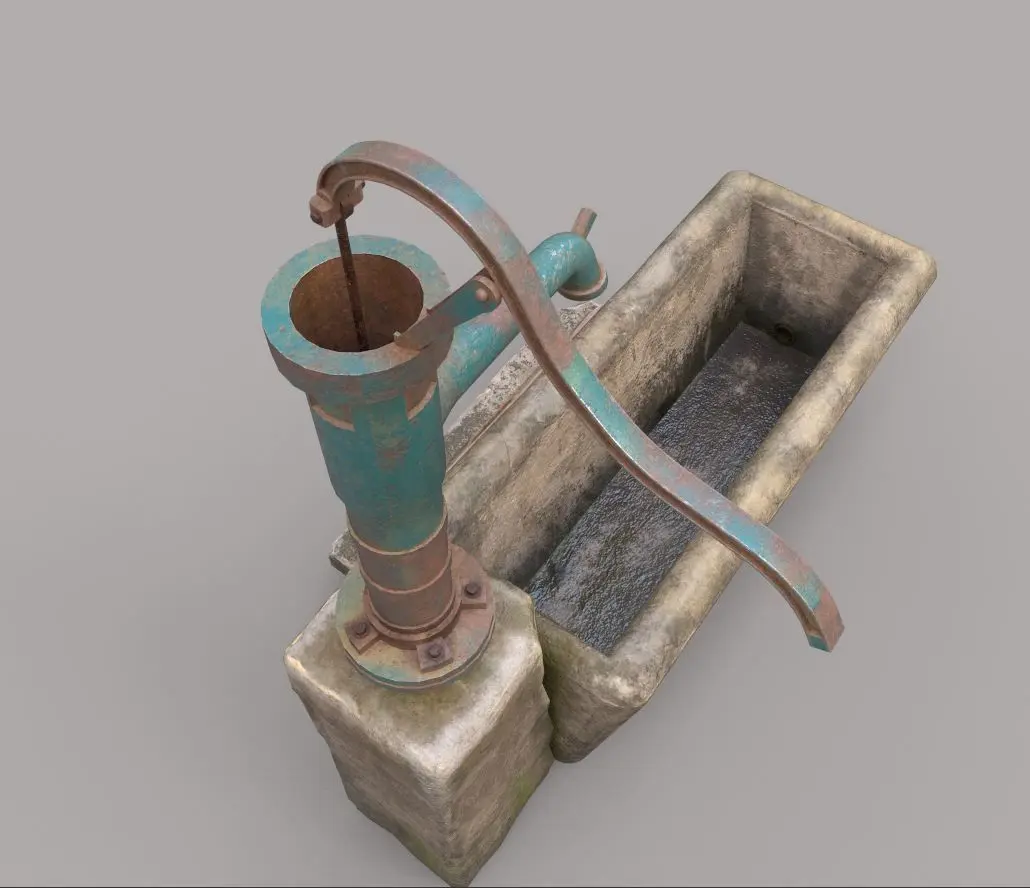 Model of Hand Water Pump.Model has two pbr material and textures. All textures are 4096x4096-2048x2048- in sizes and PNG -JPEG formats. Maps are(diffuse-specular-normal-glossiness-height). Also all textures and materials are PNG formats.