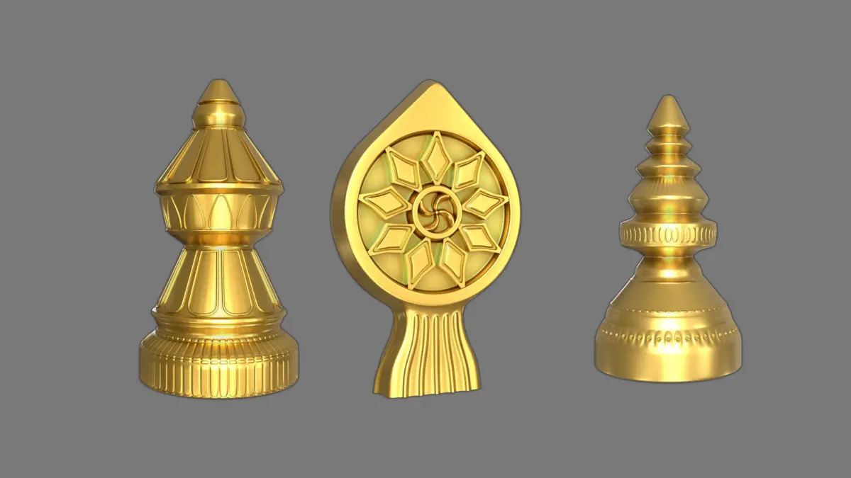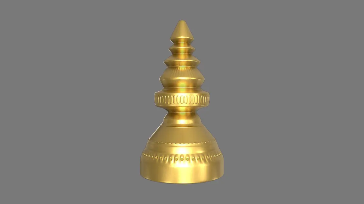 Handcrafted Brass GajurThis is a high-quality 3D model of a Handcrafted Brass Gajur, inspired by traditional South Asian metalwork and spiritual architecture. Featuring intricate carved details, floral motifs, and ornamental spirals, this model is ideal for use in temple design, architectural visualization, heritage restoration projects, or ornamental detailing in digital and physical formats.