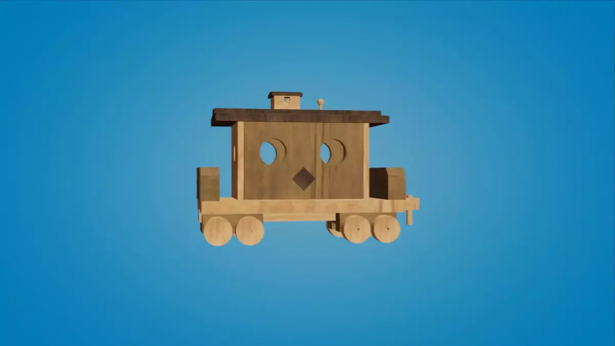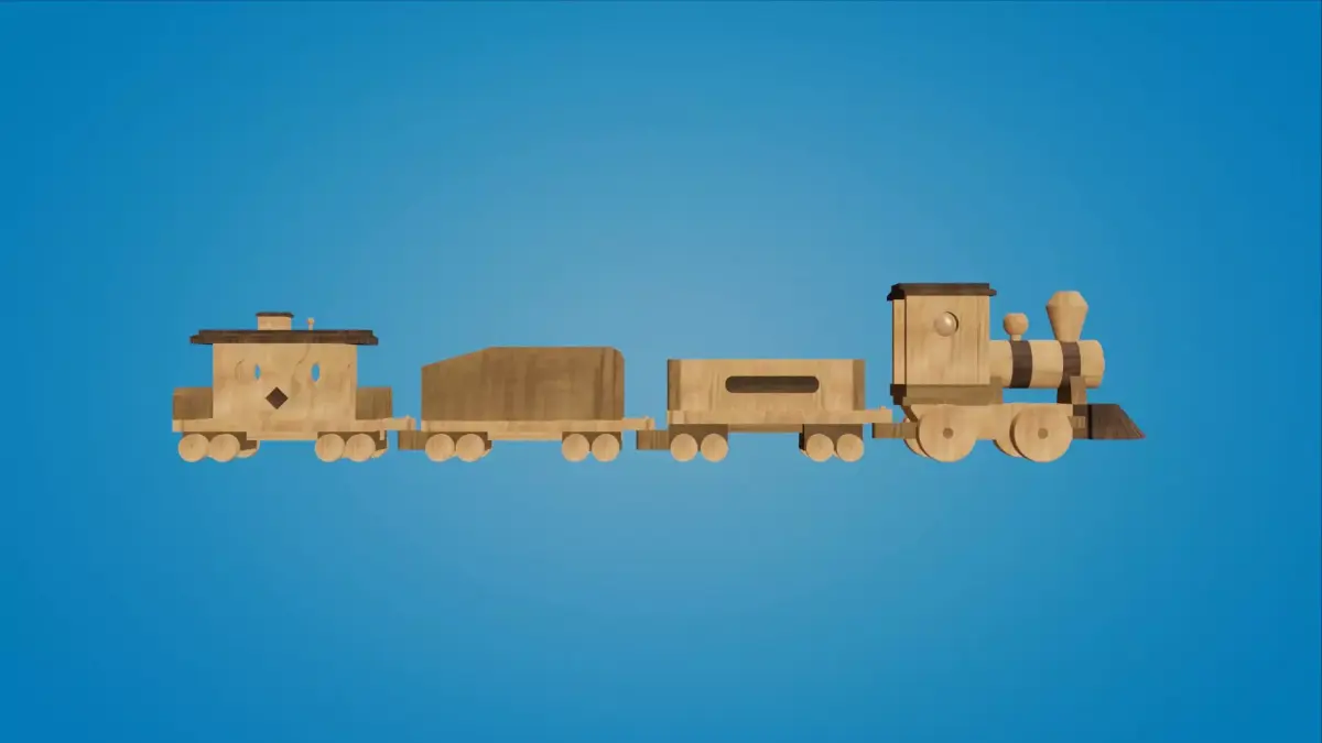 Stylized Handcrafted Wooden Toy Train – Production-Ready 3D ModelThis handcrafted 3D model of a wooden toy train is fully optimized for production use, featuring high-quality PBR materials and textures. The asset includes a non-overlapping UV layout map for seamless integration.