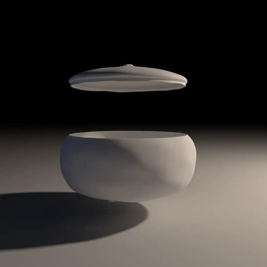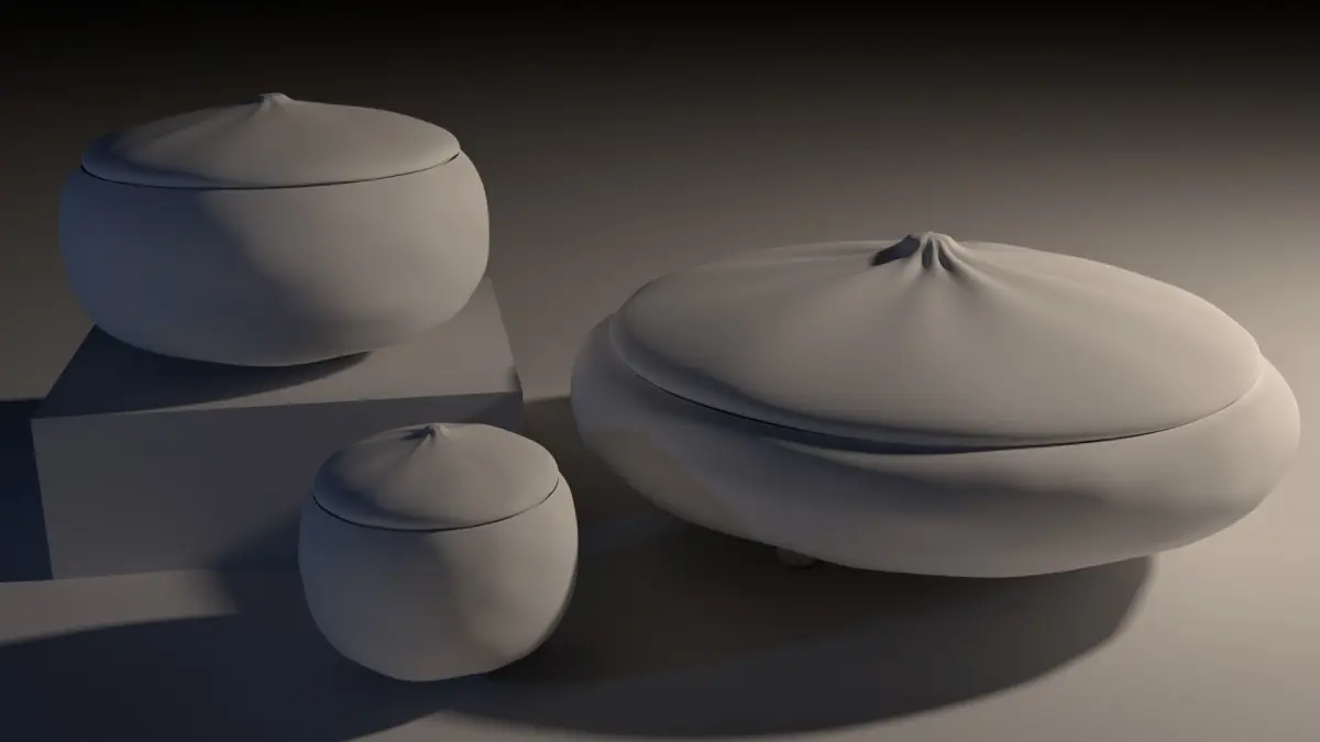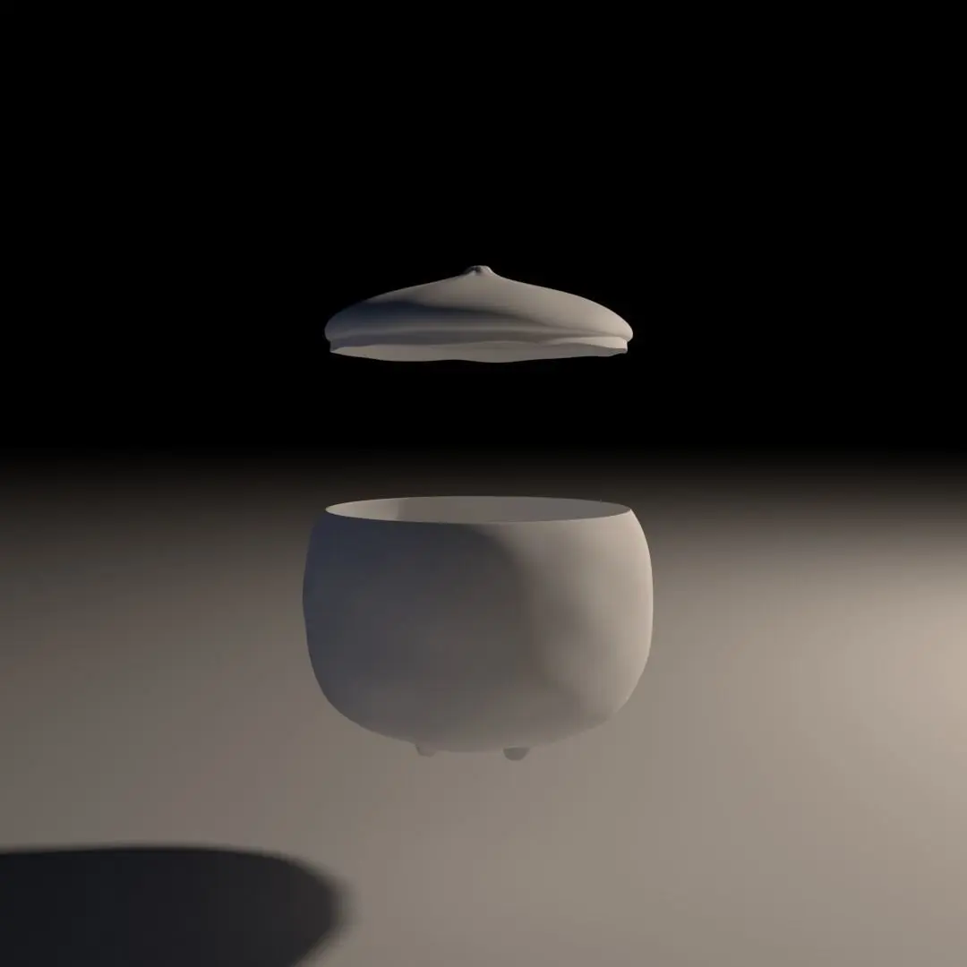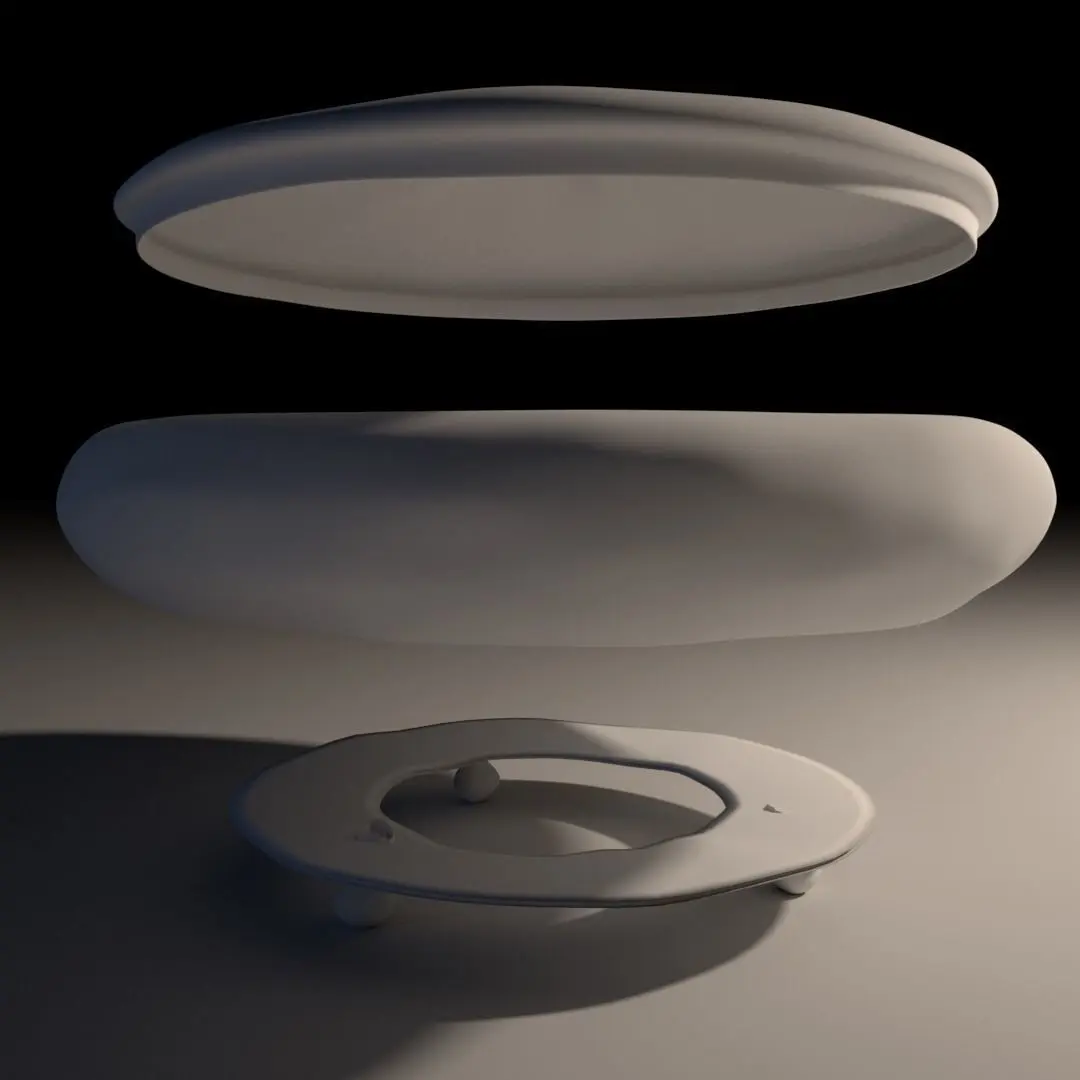 Handmade decorative earthenware dish set with antique silvered glaze. Small irregularities in texture and thickness have been added to mimic hand-thrown pottery.Each component is UV unwrapped.
