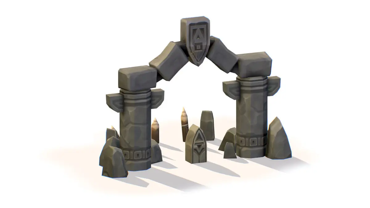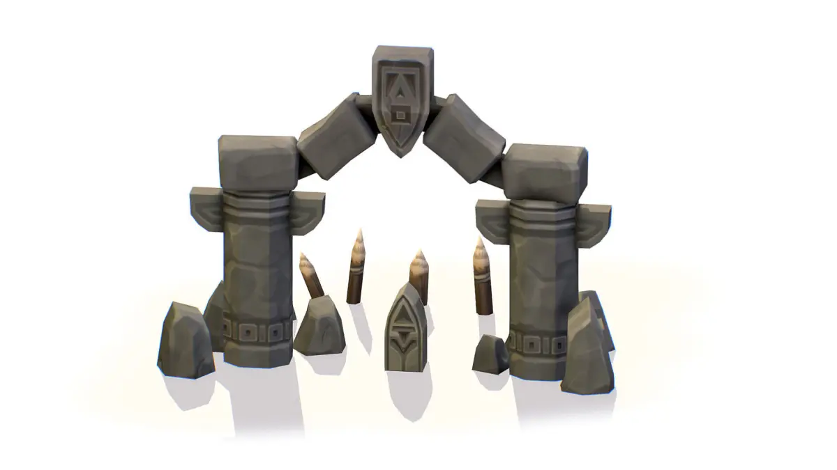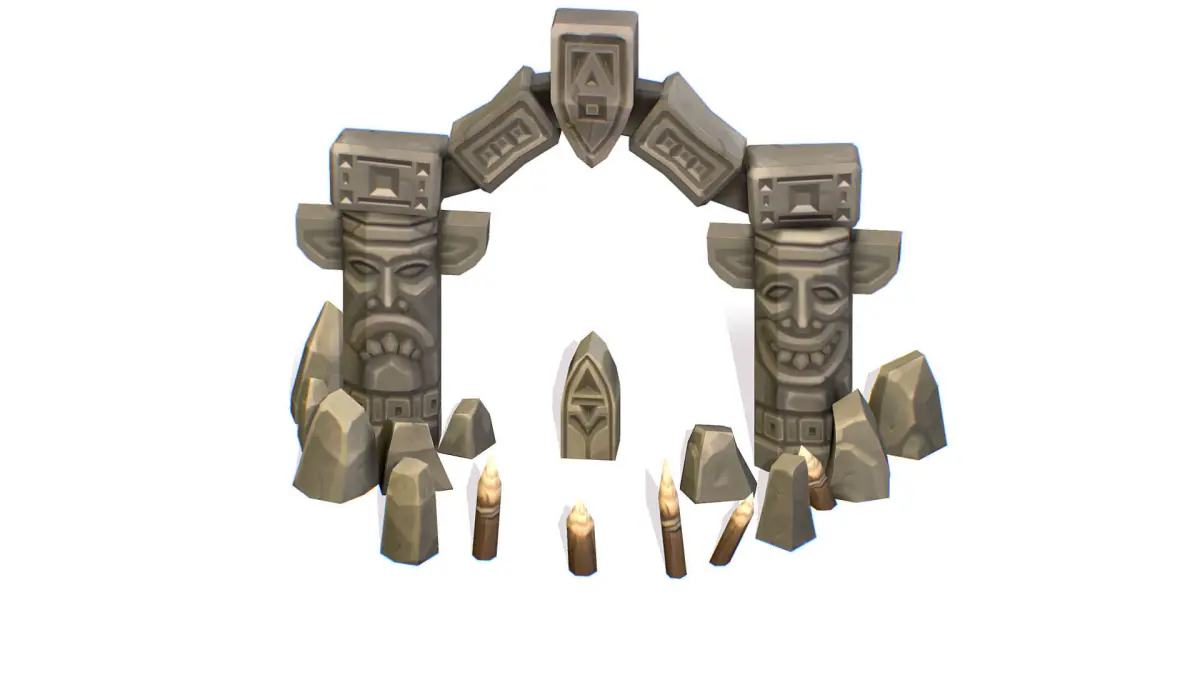 - Series 3d Assets of buildings and structures, prehistoric setting, a lot of symbols, totems.