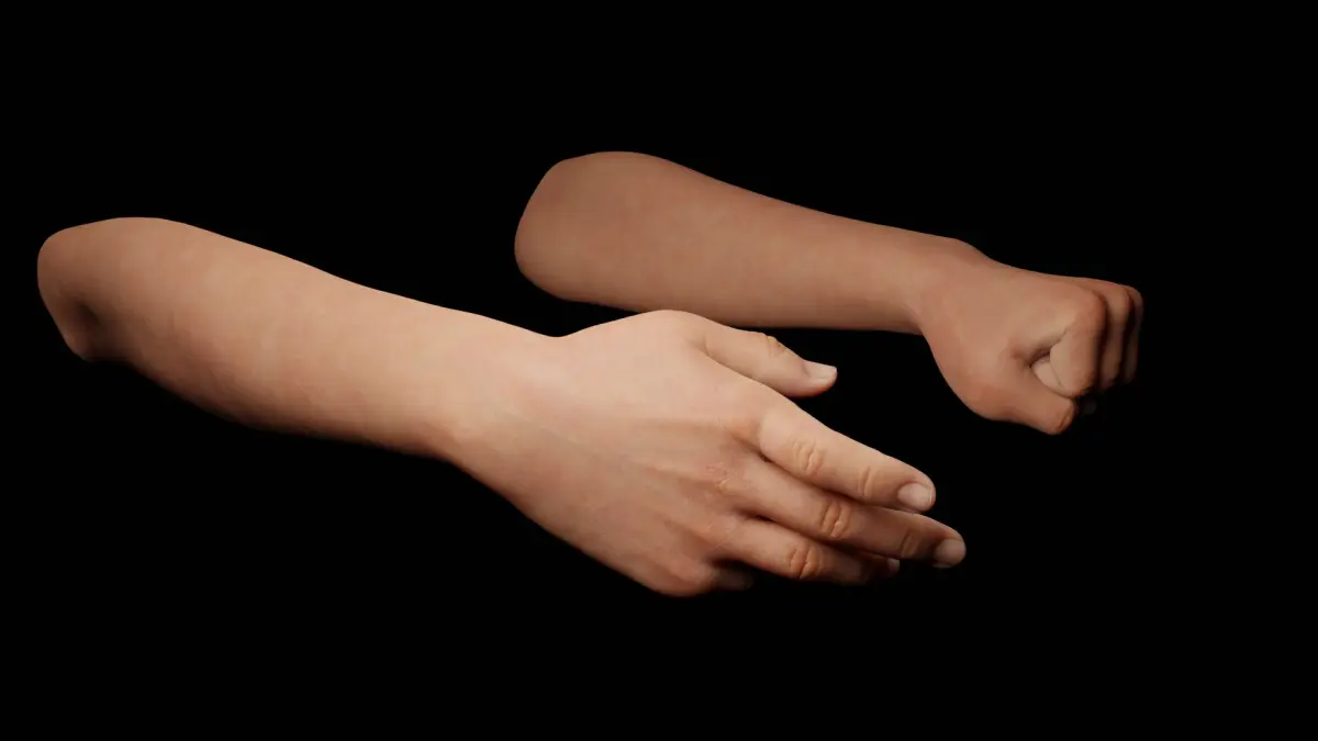 The models are rigged and skinned. The arms and hands have FK controls, and the fingers have both IK and FK controls. The skinning also includes corrective shape keys to get better deformations. The hands include fist animations, counting animations and a hand movement animation demo.