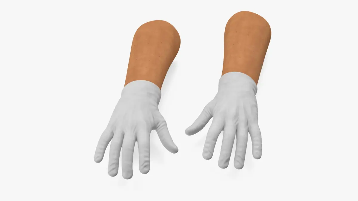 Designed with high precision, this model captures the intricate details of both the gloves and the hands underneath, including realistic textures, folds, and contours. The gloves are rendered in a clean, sterile white finish, embodying the professionalism and hygiene associated with medical and laboratory environments. The rigging enhances versatility, making it suitable for animations, interactive simulations, and close-up renders.