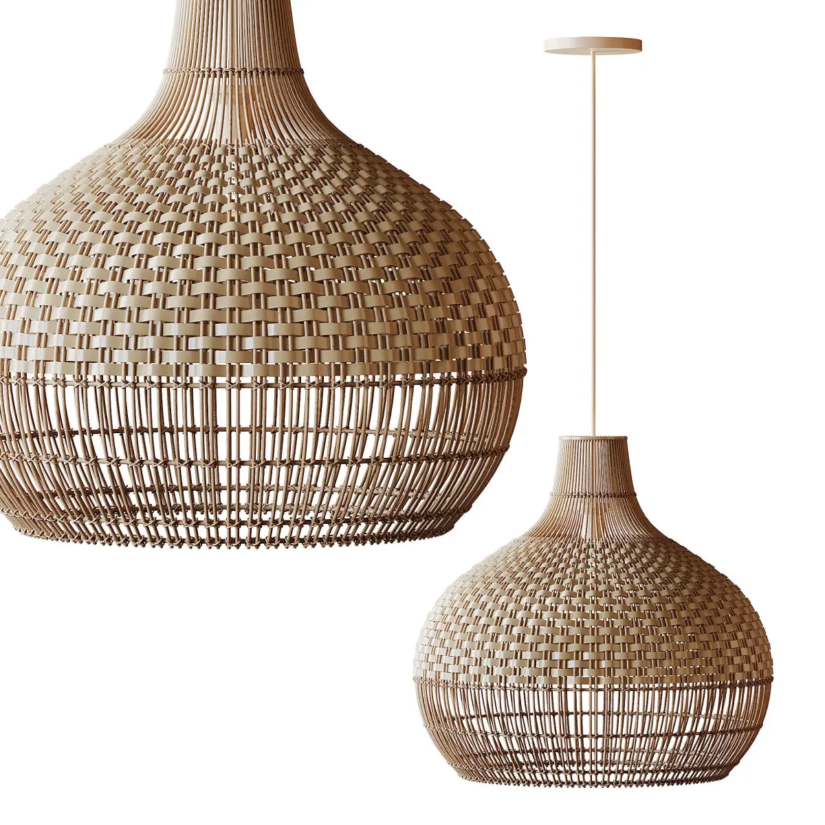 Tags: rattan pendant lamp, handwoven light shade, Japandi lighting, boho lamp 3D, wicker light fixture, gourd-shaped pendant, kitchen pendant light, natural woven decor, realistic rattan model, ceiling light 3D, corona render lighting, artisanal lamp model, basket light 3D, hanging rattan light, cozy lighting 3D, neutral interior decor, woven pendant fixture, contemporary eco lamp, bohemian ceiling light, textured light model
