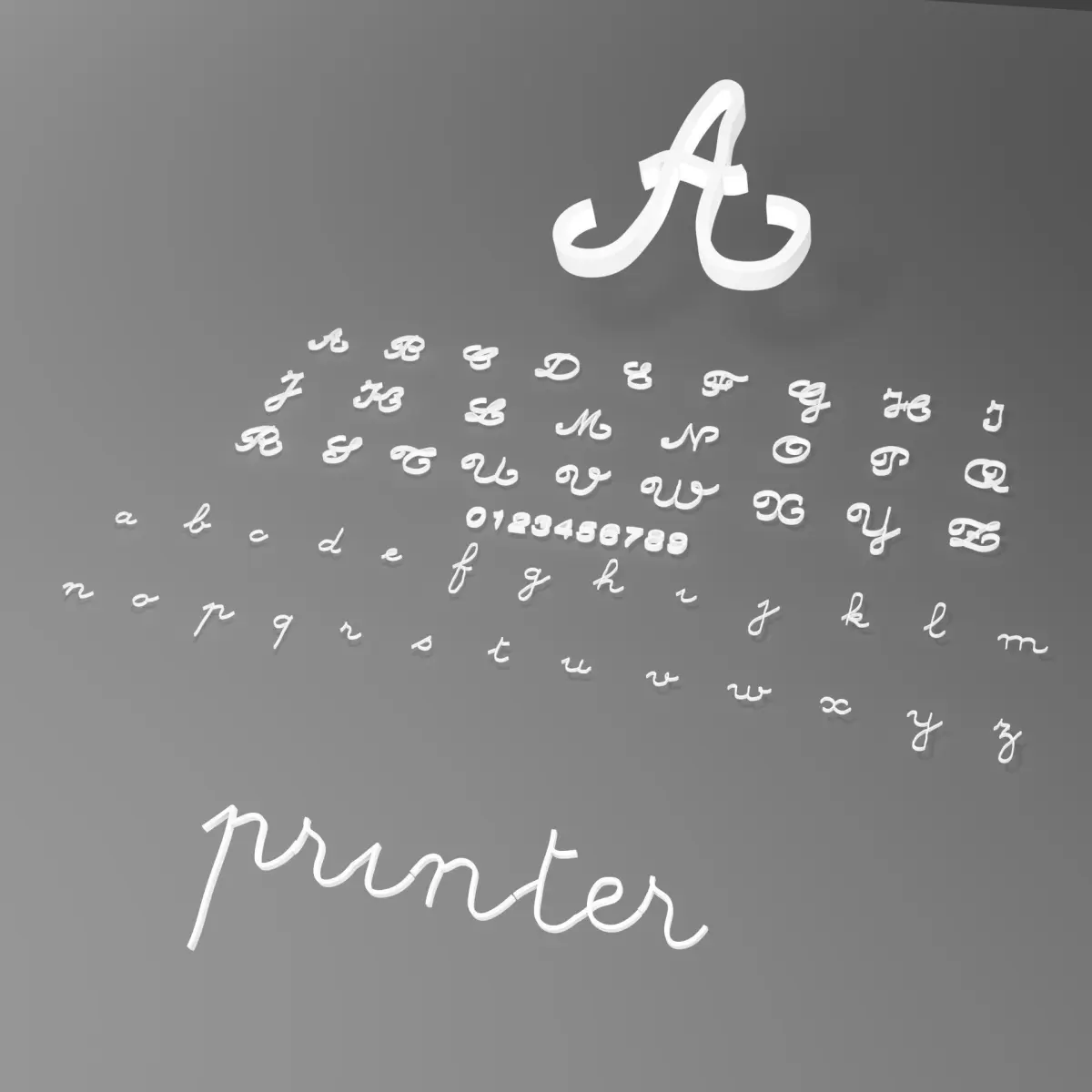 It contains lower-case letters, upper-case letters and numbers (62 independent elements), so you can print just one letter for a key ring for example.