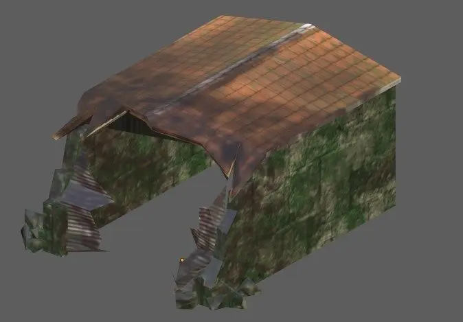 Low poly hangar for storing military equipment and more. Modeled in blender in two versions:the first - a whole hangar (the door is a child, you can make an animation for its opening), vertices 50, triangules 91;the second - the hangar destroyed by the explosion, vertices 349, triangules 636.