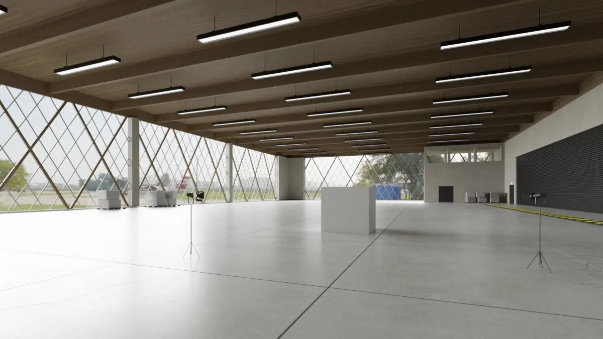 Building dimensions: 45.55 m x 70.47 m x 12 m (WxLxH) The white cube in the center of the stage measures: 2mx2mx2m