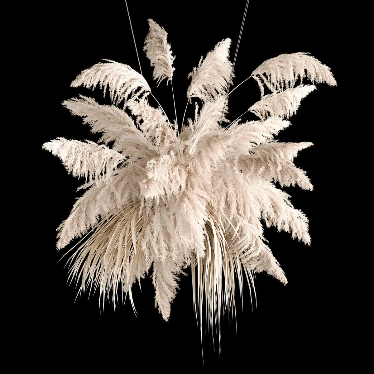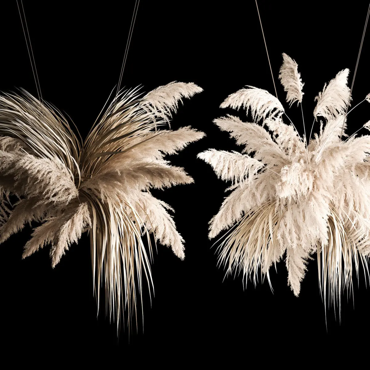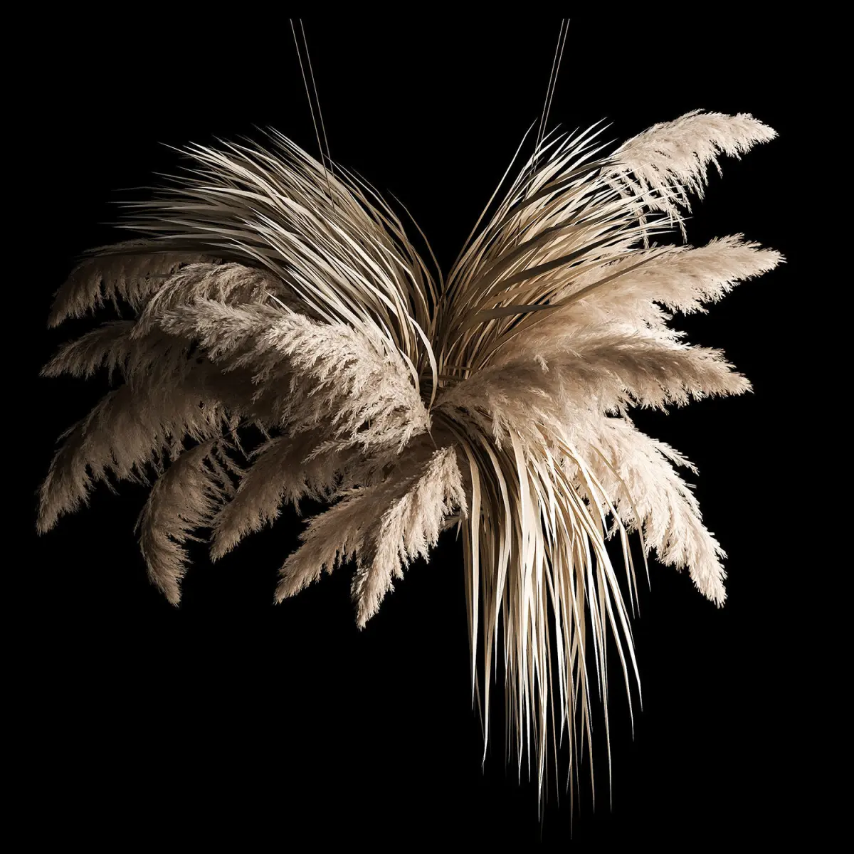 Hanging bouquet of dry reeds for decoration and interior. Wedding decor, decor for a celebration.Bouquet of bleached dried flowersPhragmites australis - Common reed.Dry branches, dry branches, dried flowers.Dry reed - Dry white reed.Dried flower, dry grass.