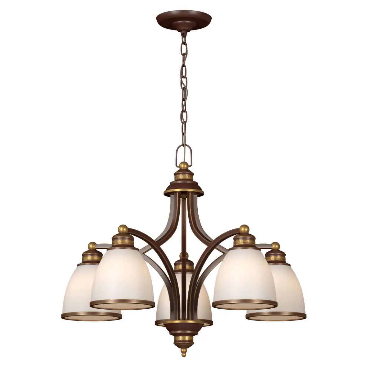 The Italian company Artelamp is one of the world's leading manufacturers of lighting equipment in the middle price segment. Today we present you one of the company's models - a pendant chandelier A9518LM-5BA. The design of this product is beautifully designed in classic style and combines pleasant shades in colors. For the manufacture of the case, metal was used, 5 shades are made of metal and glass and have a matte surface. The approximate lighting area reaches 10 sq. m.