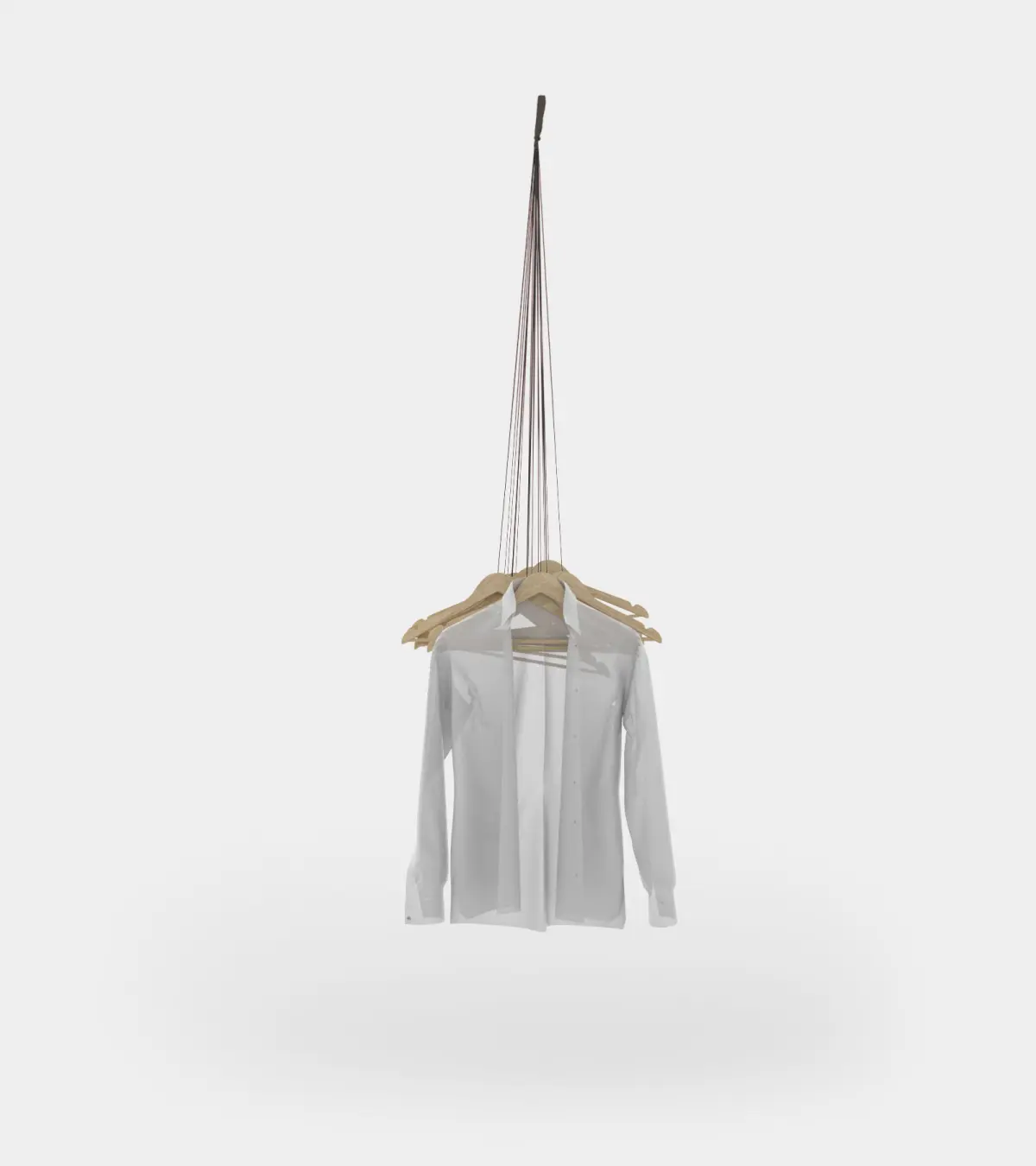 Photorealistic 3D model hanging coat rack with hangers is both a perfect decorative element and a very practical addition to both a 3D bedroom or a 3D hallway
