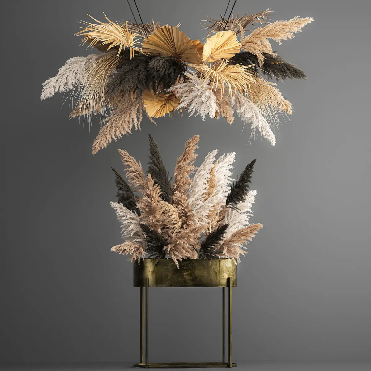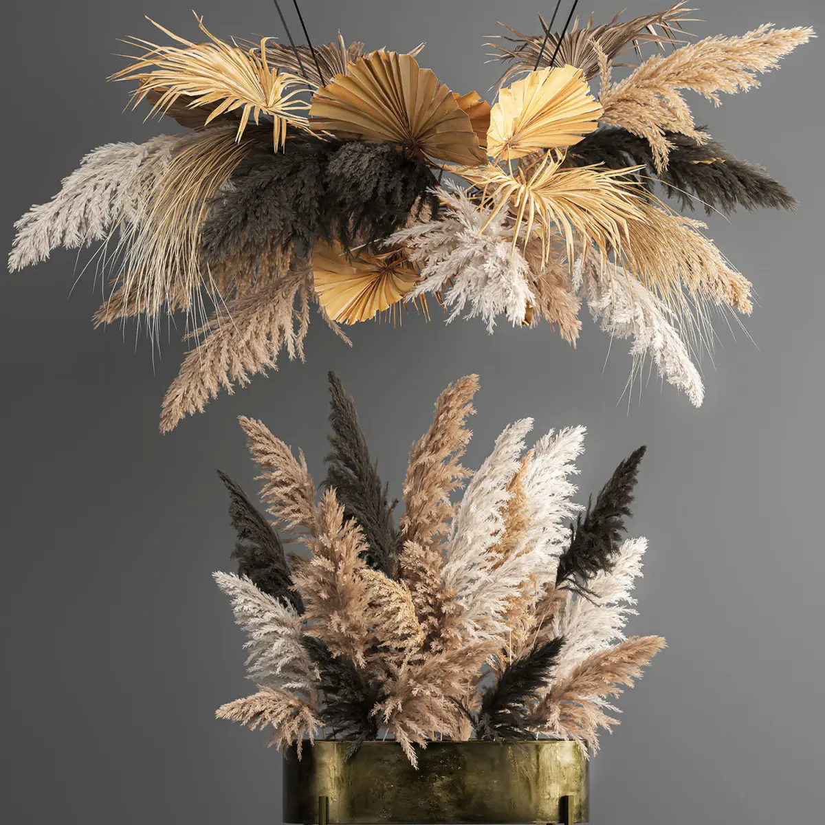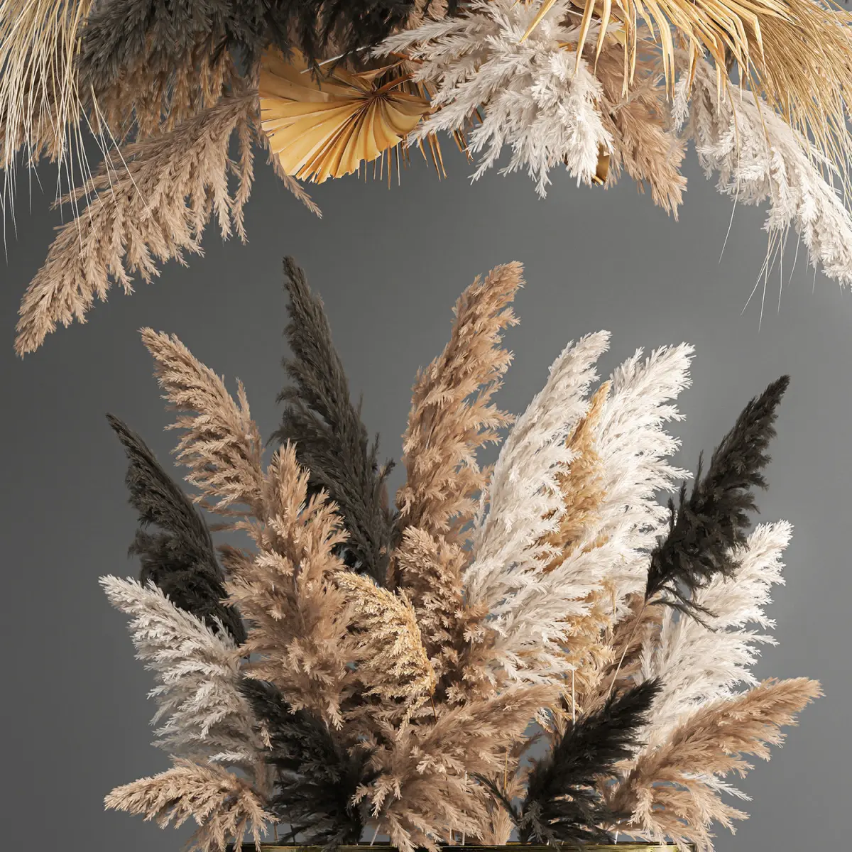 Decorative Bouquet of dry reeds in a vase for decor and interior design.Bouquet of dry bleached flowersCommon reed.Phragmites australis.Dry white reeds.Dry reedDried flowers, dry grass.dry, stabilized, paintedCortaderia, pampas, pampas grass.Hanging decor of their dried flowers, palm leaves, grass, branches, pampas grass.