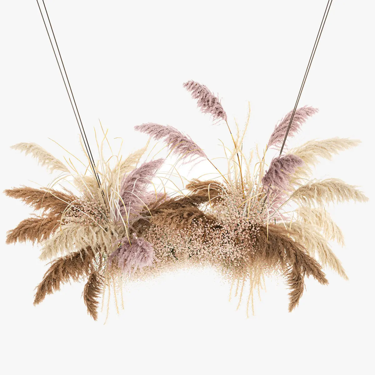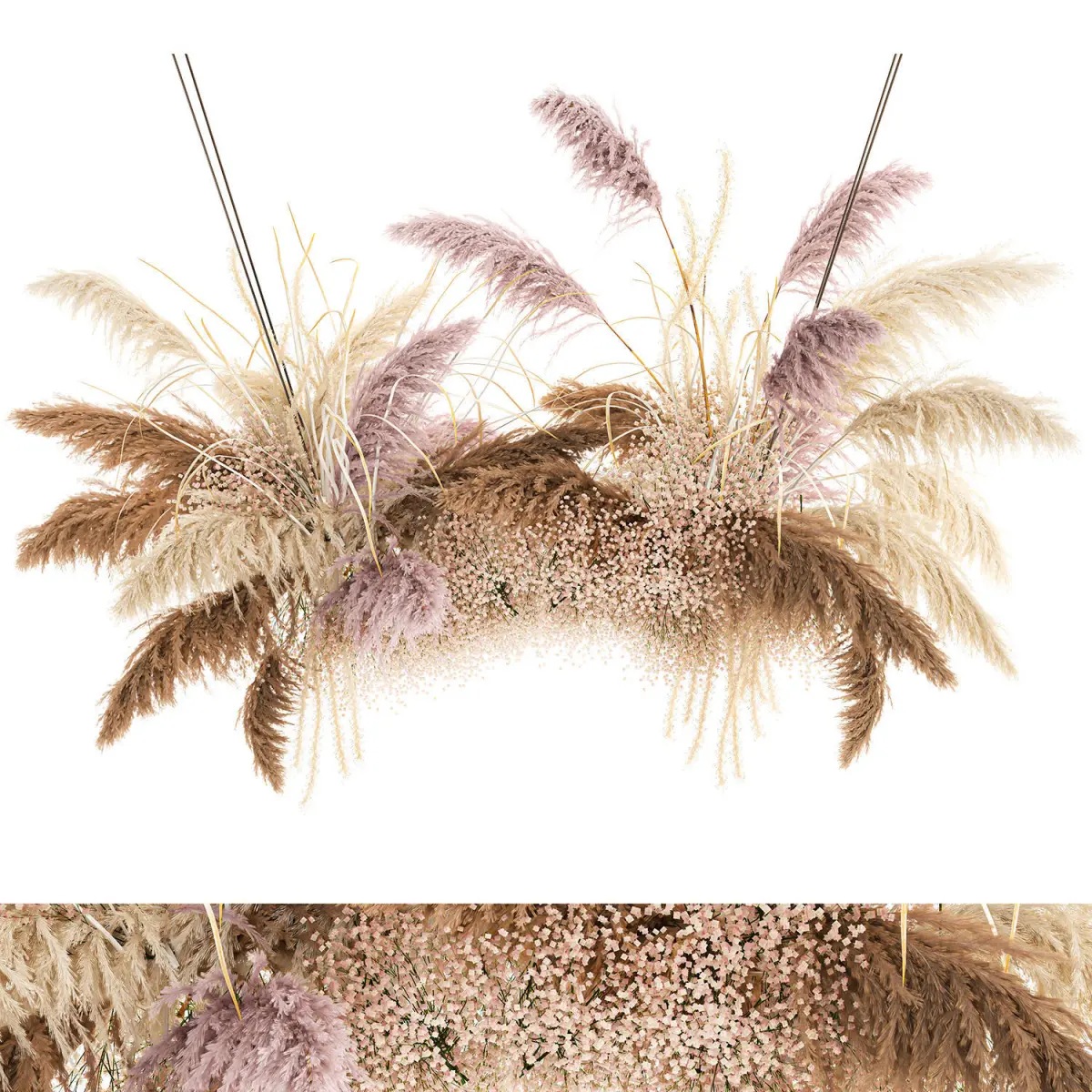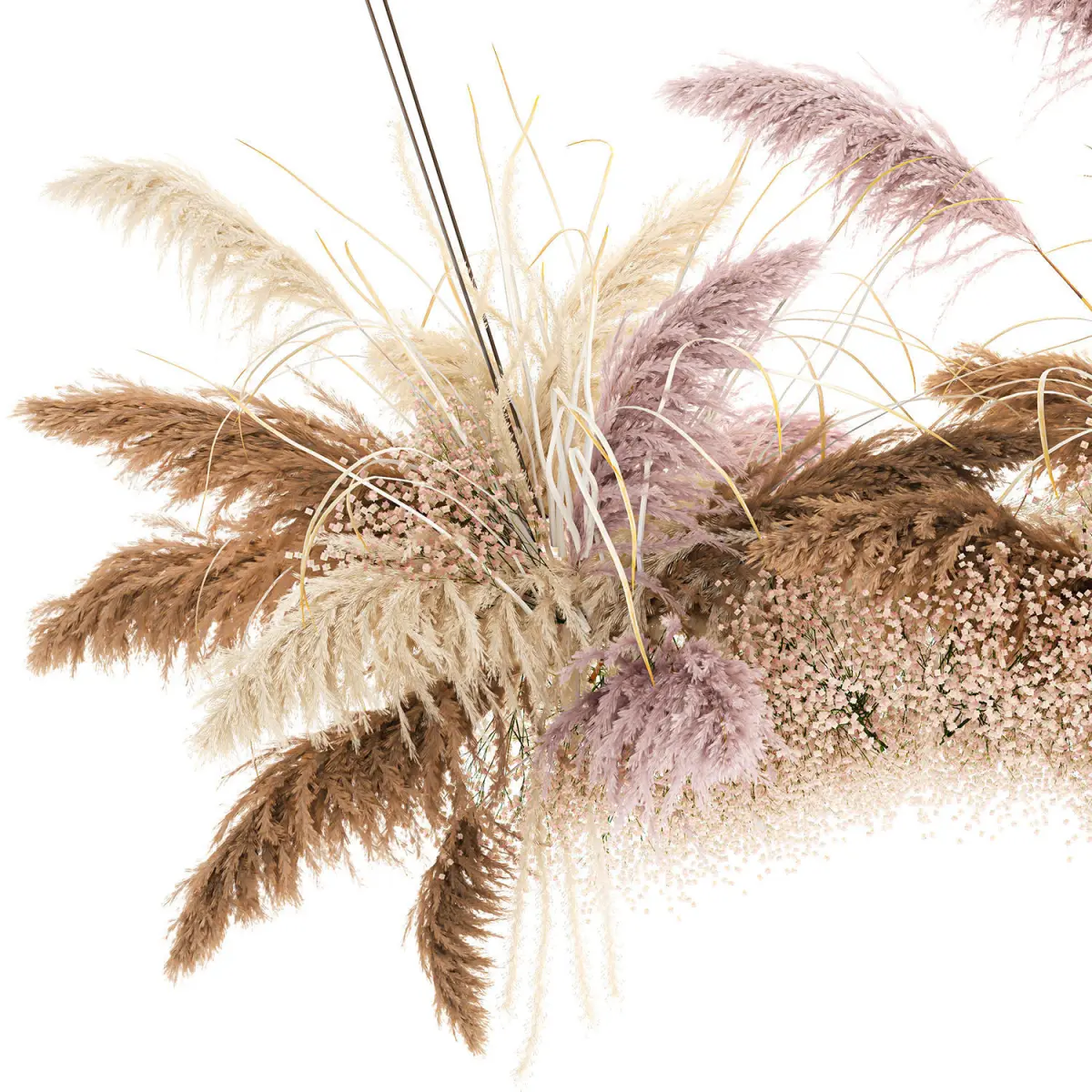 Hanging bouquet of dry reeds for decor and interior design. Wedding decor, decor for the celebration.Bouquet of dry bleached flowersPhragmites australis - Common reed.Dry twigs, dry twigs, dried flowers.Dry reed - Dry white reed.Dried flowers, dry grass.dry, stabilized, paintedCortaderia, pampas, pampas grass.Hanging decor of their dried flowers, palm leavesInstallation of dried flowers, hanging flower arrangement.Gypsophila - Gypsophila, swing