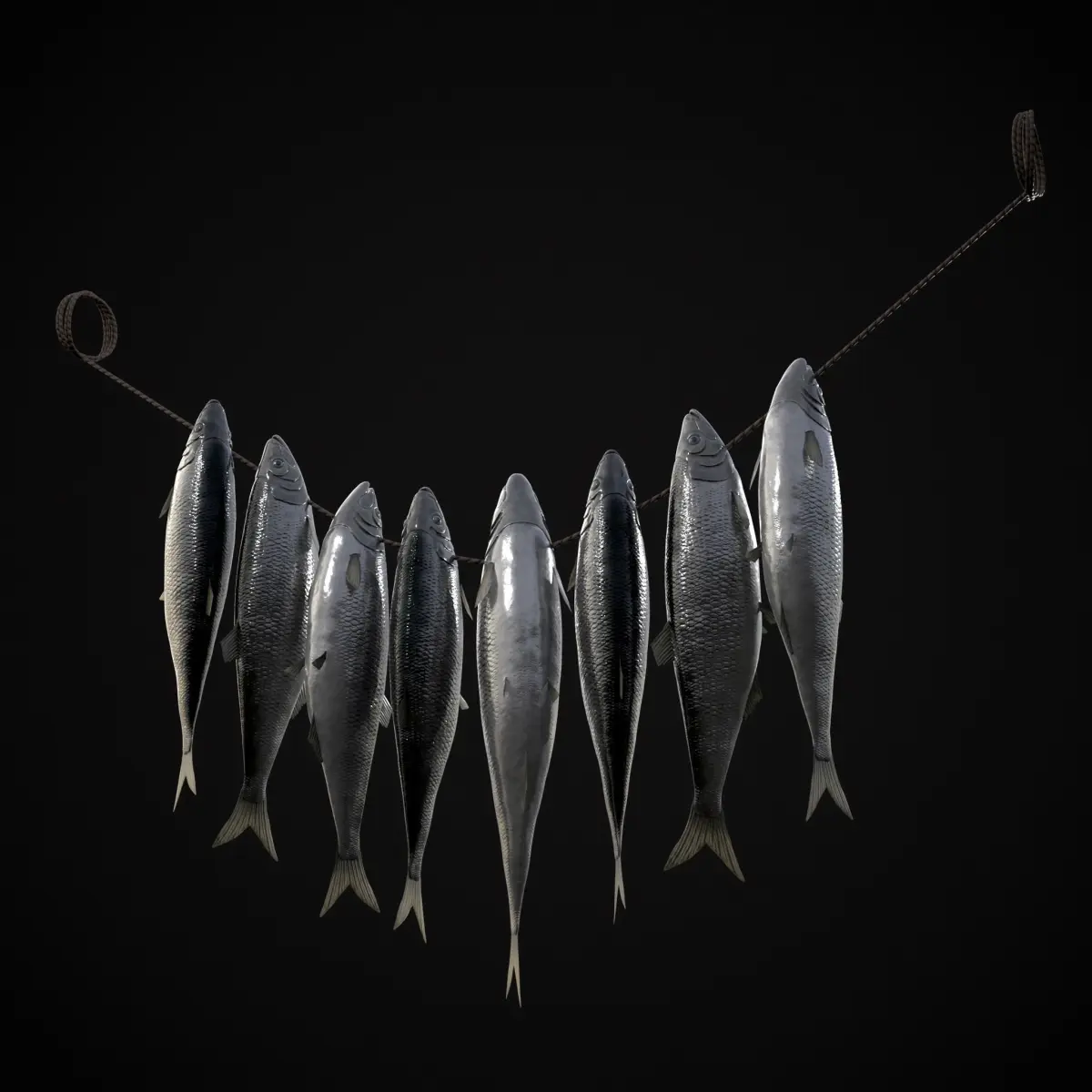 Hanging Herring Fish - 3D Model Files Include FBX and OBJ. Includes PBR Texture in 4096 x 4096. - Maps include : Basecolor, Normal, Roughness, Height and Metallic. All Preview renders were done Marmoset Toolbag 4. Scaled to real world scale. Customer Service Guaranteed. From the Creators at Get Dead Entertainment. Please like and Rate! Follow us on FaceBook and Instagram to keep updated on all our newest models. Model can be used for any purpose except resale or redistribution of the asset if not used in a game, commercial or media project.