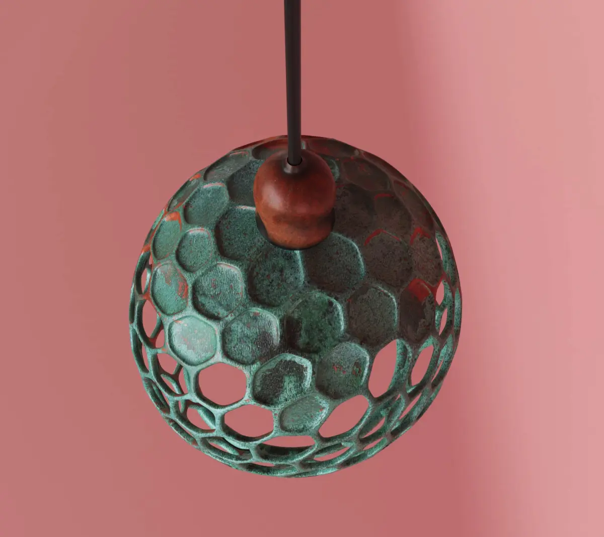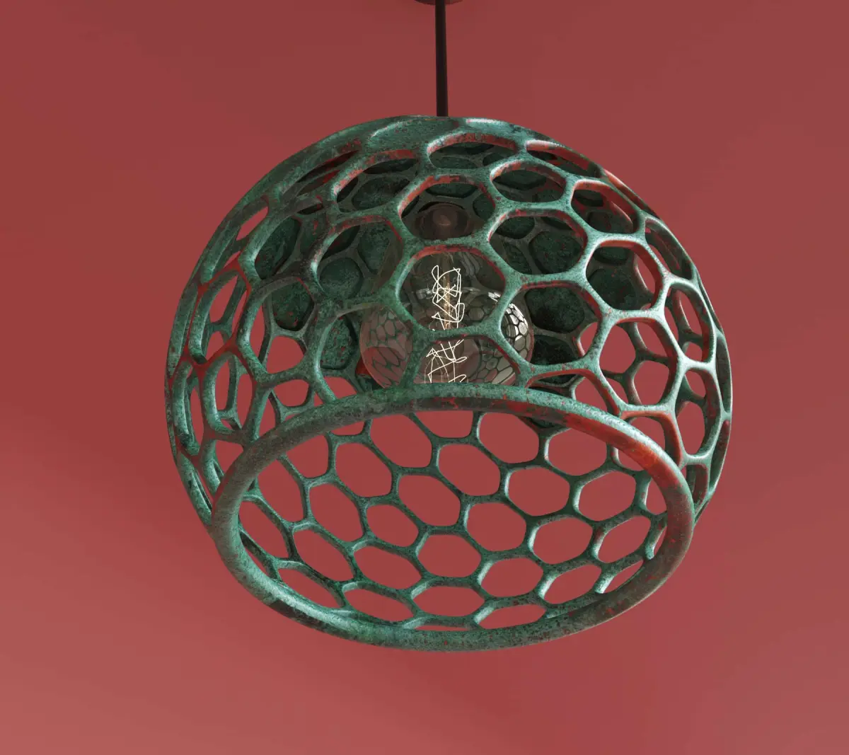The photo-realistic hanging lamp is made of metal with a glass bulb.