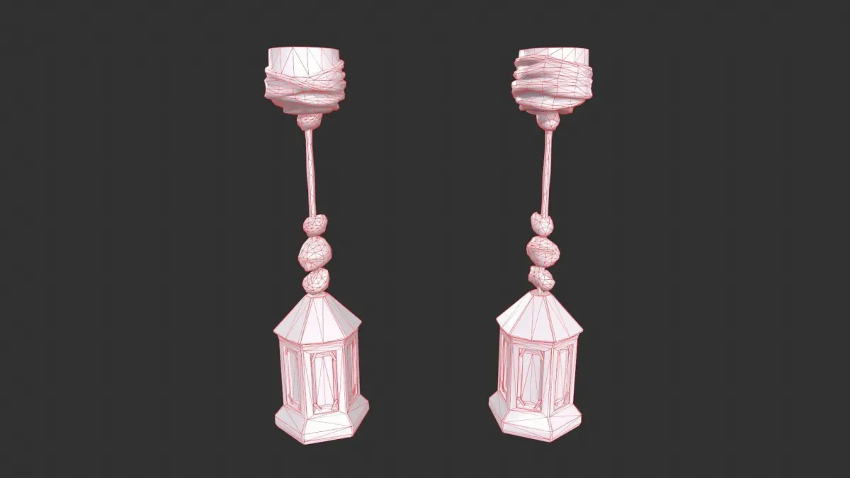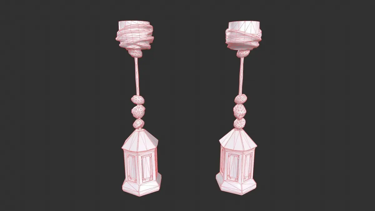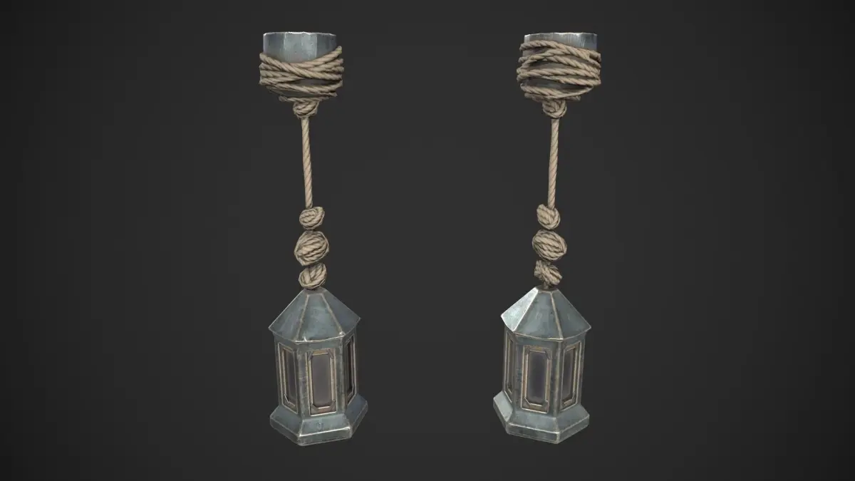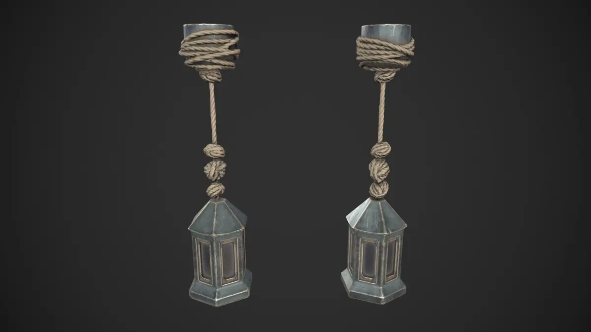 Game-ready Hanging Medieval Lamp asset, with PBR textures included in the files. This has 1267 polys (2222 tris) and 1201 vertices.