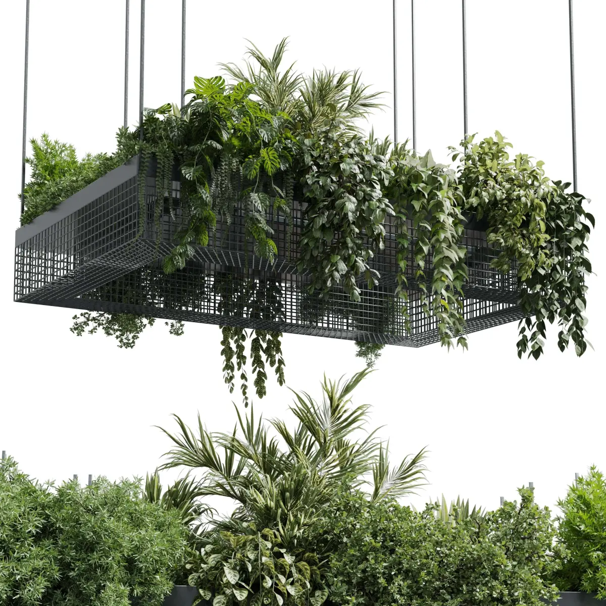 hanging plants - indoor plant set 447 Rectangle pendant pot vray