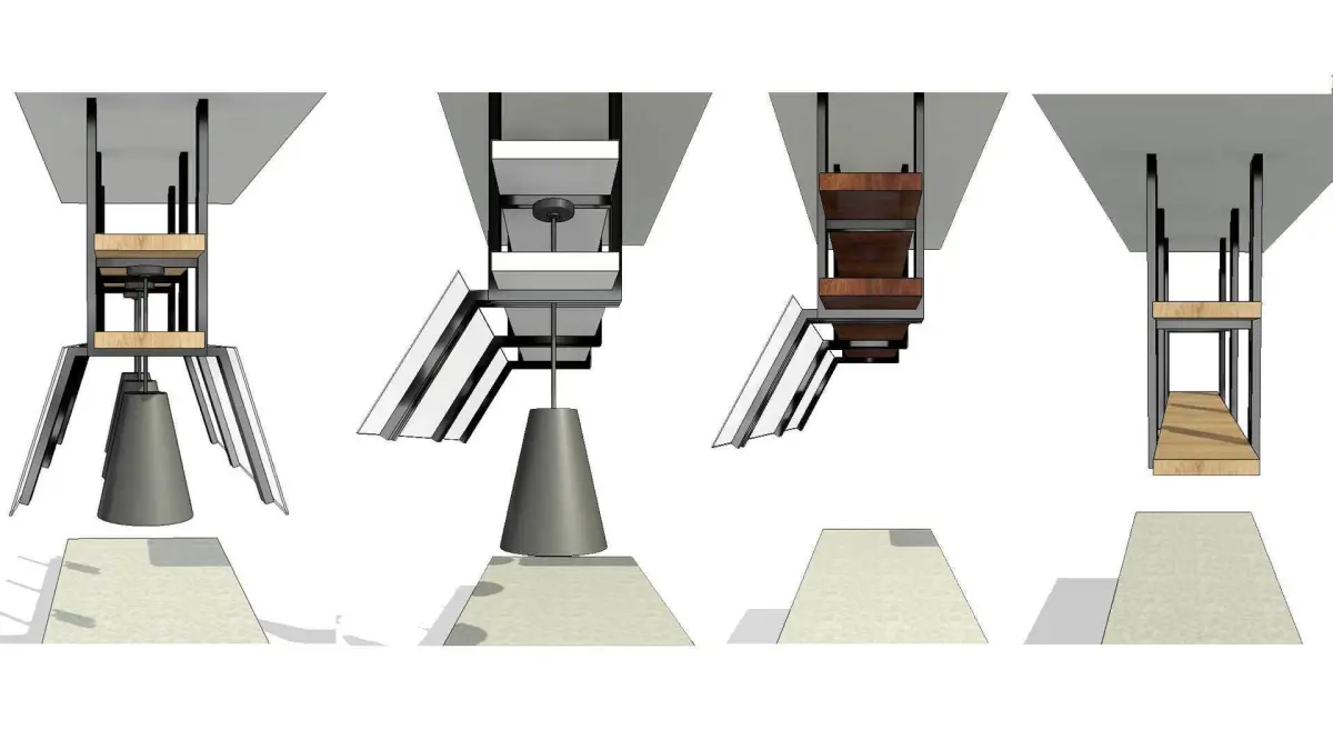 This product includes two different types of unique fully parametric ceiling based generic models families for a buffet or countertop ceiling hanging decorative shelves with sneeze guards and heating lamps. First model is with two overhang shelves and the second with one tray basket. The models are ideal for placing over restaurant buffet counters or even for private kitchen islands and counters.