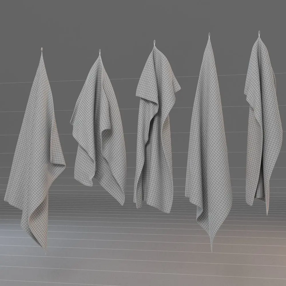 A DETAILED 3D MODEL COLLECTION OF HANGING TOWELS;