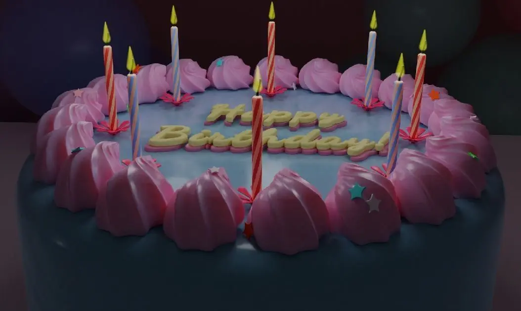 3d model happy birthday decoration made on blender 2.9 Happy birthday cake, candles, ballons, presents and ect.All pictures rendered by eevee and also by cycles.Image formate PNG. included files: