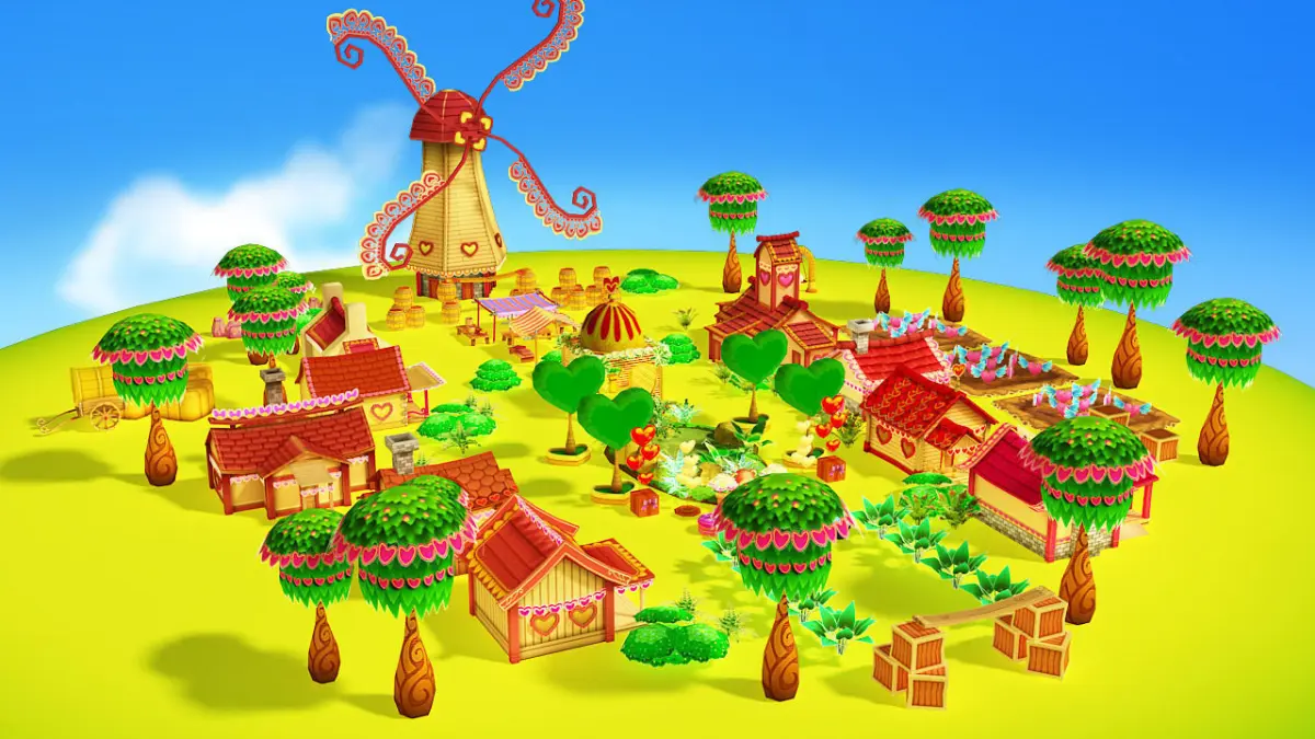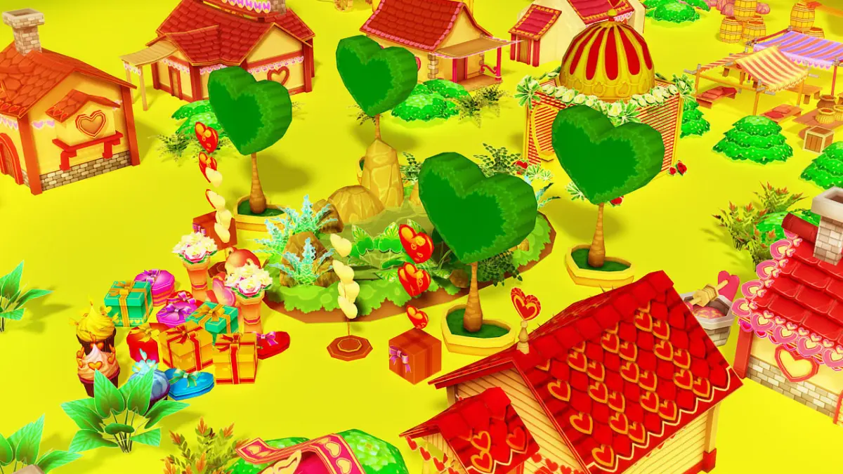 It includes more than 100 custom objects: - Heart Tree - Barrel and Crate Barrier - Hay Cart - Cute Teddy Bear - Heart Straw - 6 types of grass - 3 market stalls - 6 Gift Boxex - 3 Cute Cupcakes - Heart Farm - Heart Tree - Love Swing - Love Gazebo can be used for Wedding - Rocks - Windmill (animated from frame 0 - 20) - Village Pond - 10 road pieces to combine for a long road - Especially 30 houses create from 9 original house
