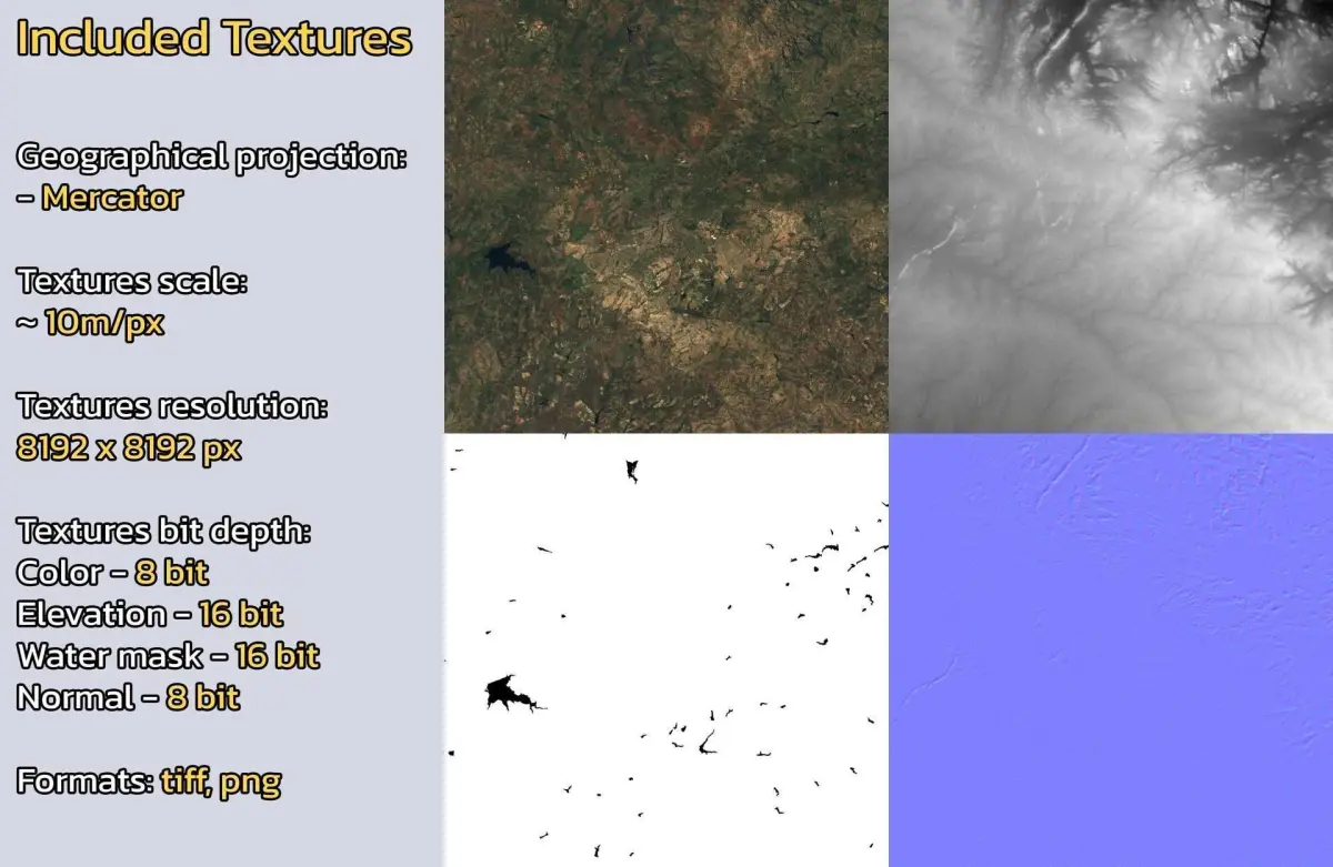 Warning: minor clouds/artifacts may be present on the diffuse color satellite texture due to the nature of the dataset. Check product images.
