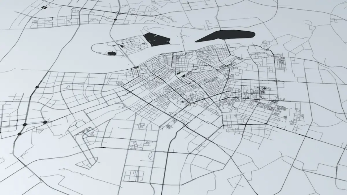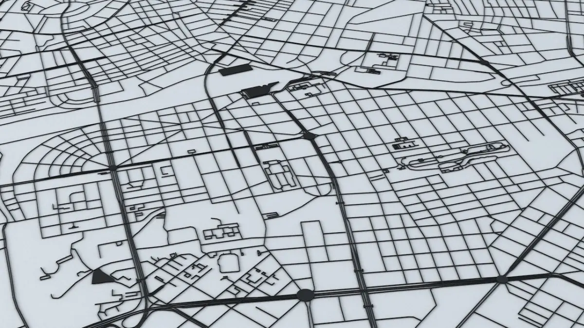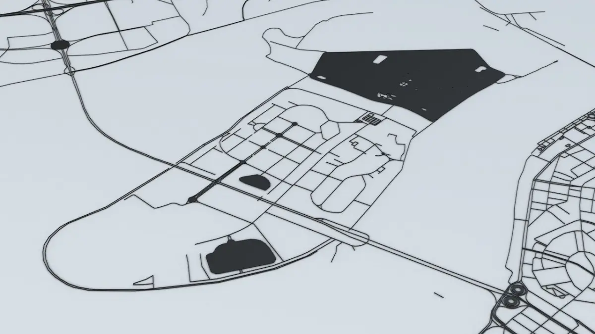 - the model is positioned on a flat surface (road network is on the “floor” - no elevation data included)