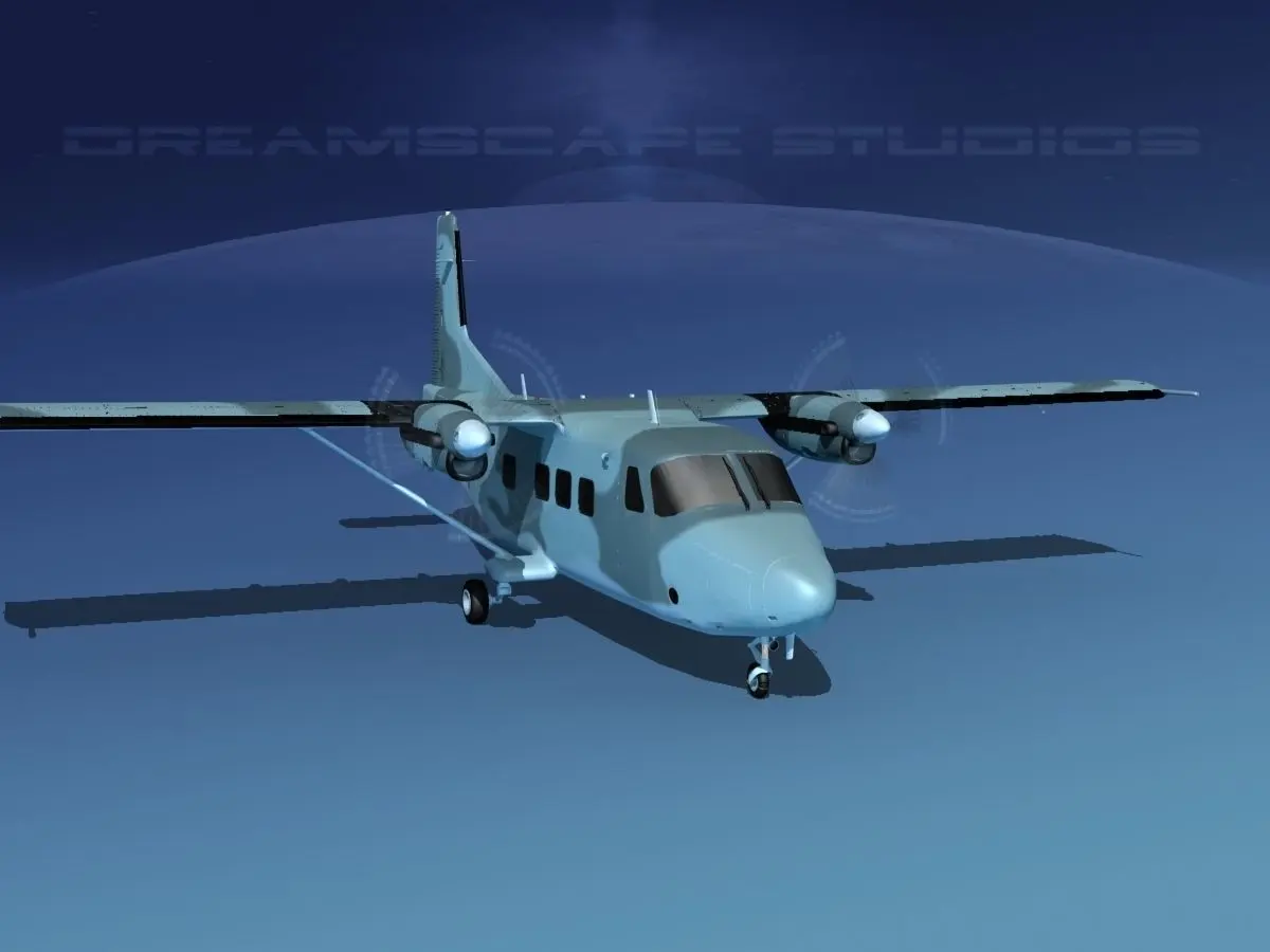 This model is originally built in max 13, is built very near to scale, within 3% of actual general dimensions. It includes a lot of exterior detail and general cabin modeling for camera views that show the cabin from outside of the aircraft. The model is fully textured including rivet patterns. Doors and baggage compartment doors are modeled separately. This model also has animateable flaps, landing gear doors, ailerons, elevators and rudder. Propellers are animated.