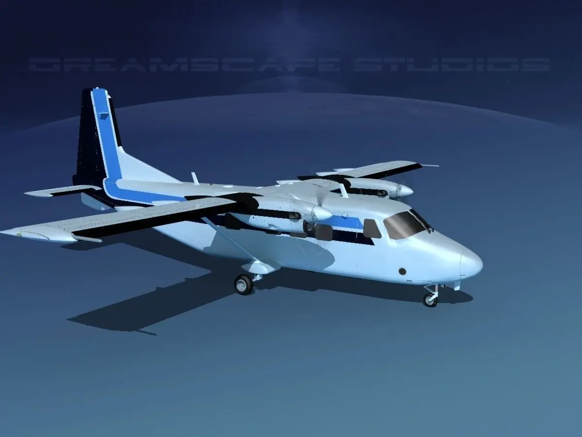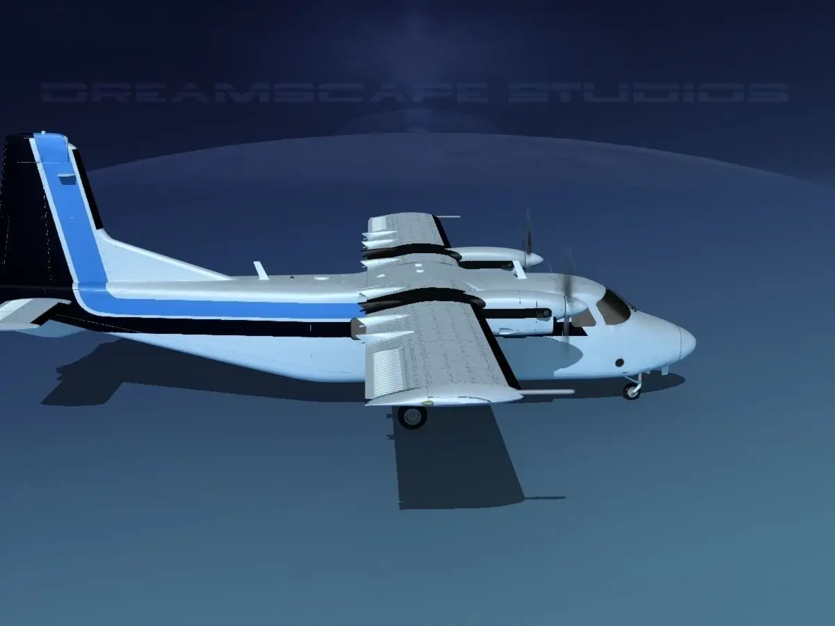 This model is originally built in max 13, is built very near to scale, within 3% of actual general dimensions. It includes a lot of exterior detail and general cabin modeling for camera views that show the cabin from outside of the aircraft. The model is fully textured including rivet patterns. Doors and baggage compartment doors are modeled separately. This model also has animateable flaps, landing gear doors, ailerons, elevators and rudder. Propellers are animated.